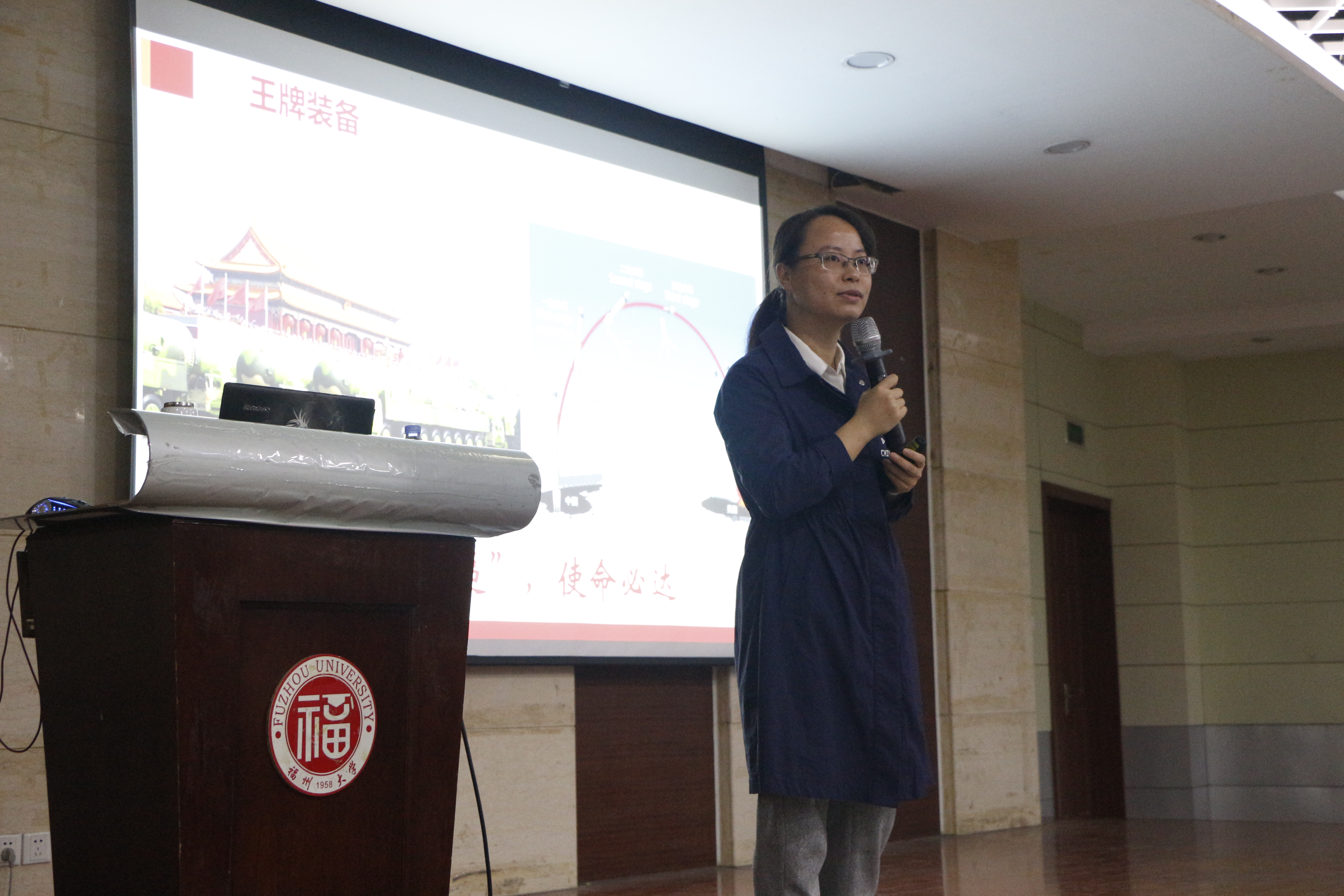 赵艳莉老师从“新中国成立70年的伟大成就”、“新中国成立70年的光辉历程”、“新中国成立70年的经验启示”、“如何应对世界百年来有之大变局”四个方面展开讲座。首先赵老师列举新中国成立70周年以来高等教育入学水平和贫困人口、城市人口的变化,以及中国的超级工程:港珠澳大桥建成通车、玉兔成功登月、东风系列的成功研制等来阐释新中国的伟大成就。赵老师为同学们展示了中国的人均GDP总值从落后逐渐攀升到世界第二,介绍了新中国70年以来从站起来到富起来再到强起来的奋斗历程。