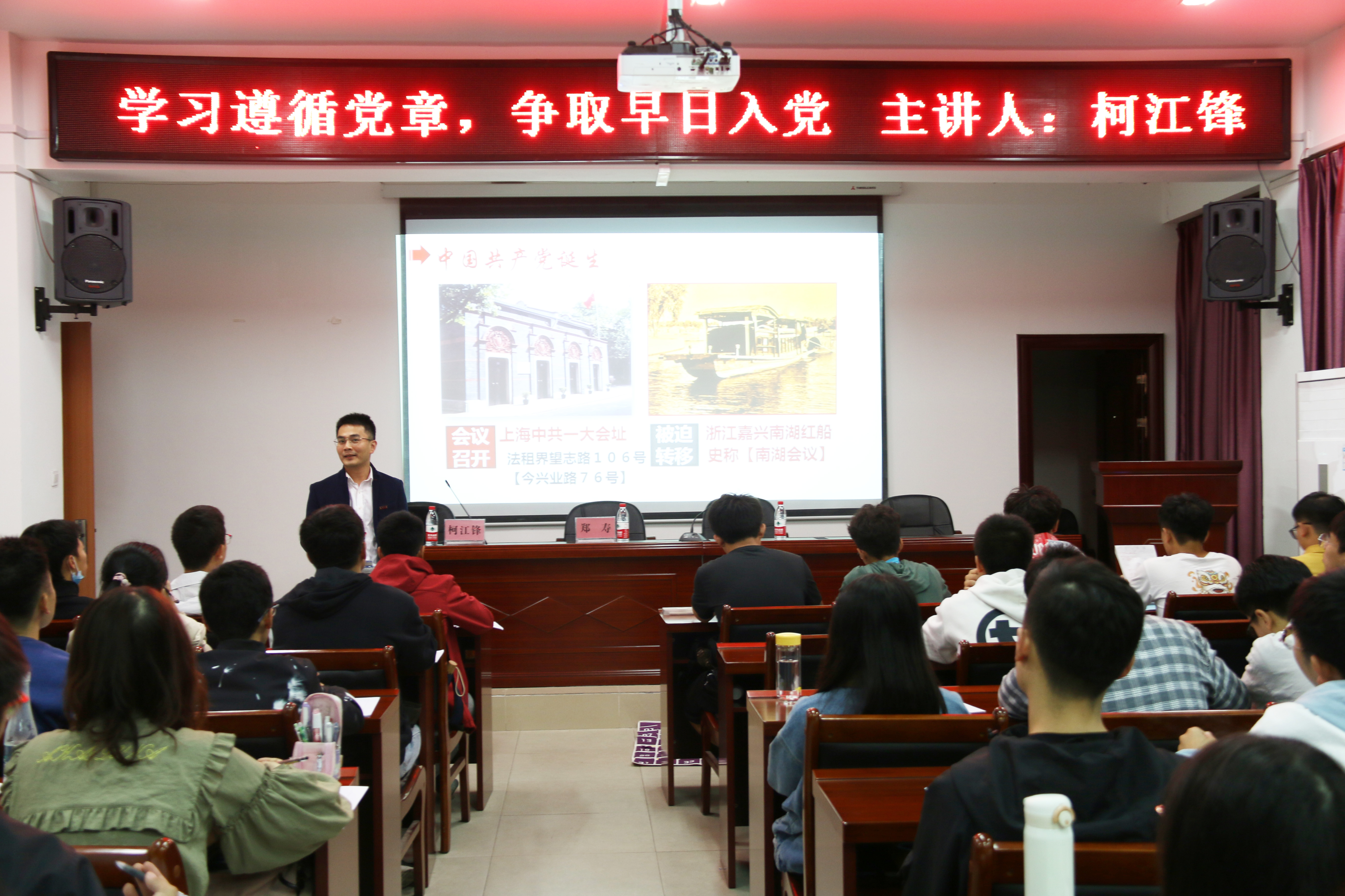 党课伊始,柯老师由中国共产党的诞生入手,向积极分子们讲述了伟大的中国共产党带领中国人民从站起来到富起来,再到强起来的奋斗历程。同时,柯老师也引经据典,带领同学们回顾了共产党的革命历程。他提到:“1921年中共一大在浙江嘉兴南湖红船召开,经过28年不懈奋斗,建立了社会主义新中国,并且不断的持续发展深化自我,在经济、医疗、教育等多个方面取得了令世界瞩目的伟大成就。”随后,柯老师通过介绍“党章是什么”和“如何学习党章”这两个重要问题,向同学们讲述了党章的基本内容,并鼓励同学们课后认真学习马克思列宁主义、毛泽东思想、邓小平理论、“三个代表”重要思想、科学发展观和习近平新时代中国特色社会主义思想,加深对党章的理解与记忆,并将之作为自己的行动指南。同时也要认真学习党章,提高自己的理论知识水平,积极参与社会实践,做到理论与实际相结合,努力向党组织靠拢。