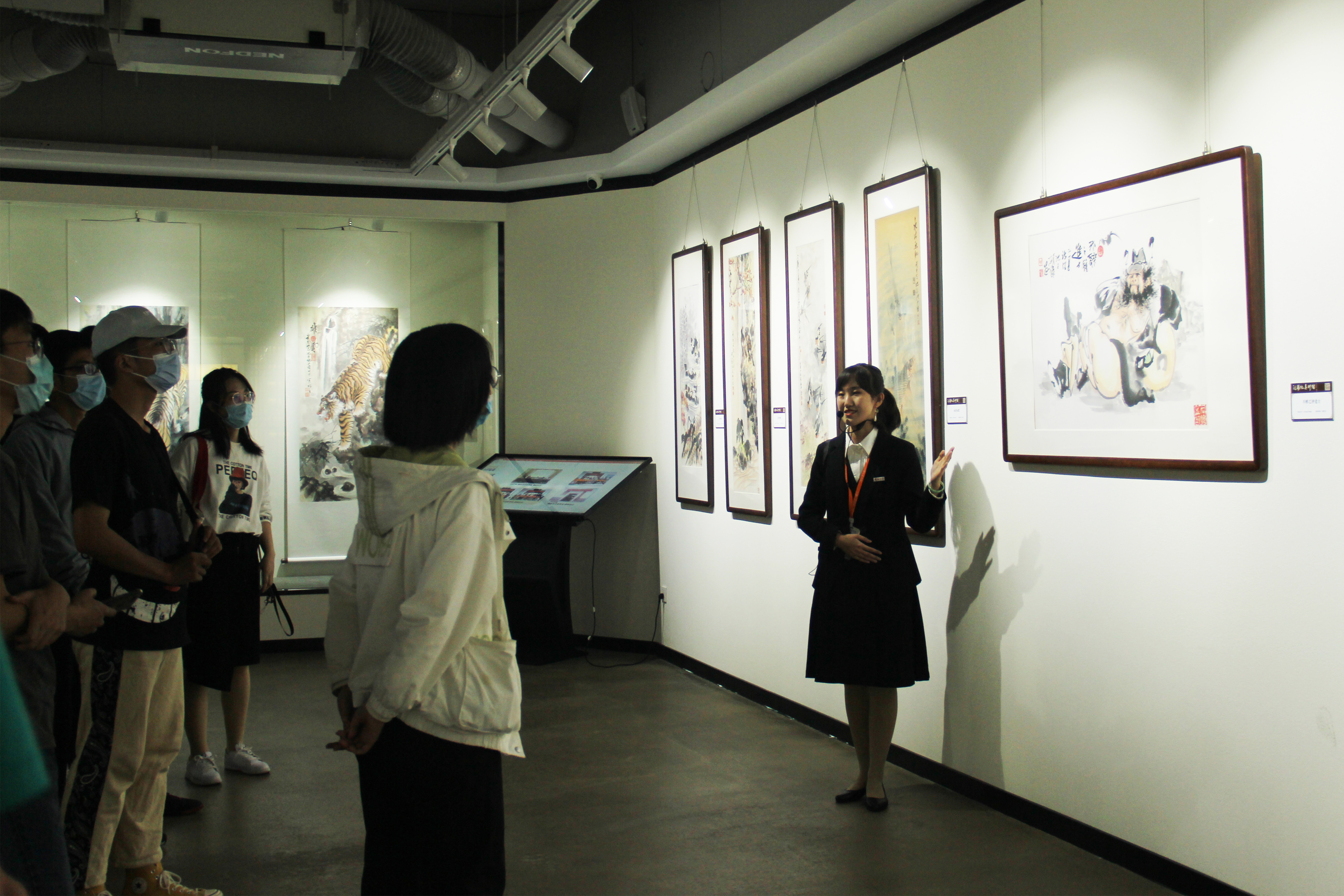 成人影视全体学员在馆内讲解员的带领下,参观了沈锡纯老先生的画作。沈老先生从事美术教育数十年,在抗战期间积极投身于敌后和战地宣传工作,是著名的书画大家和爱国人士。讲解员结合沈老先生的生平事迹,着重向学员们介绍了画作《虎》和《上山上山,山上有山》。沈老先生在抗战期间通过画虎来鼓励学生要像勇猛的老虎一样积极抗战,并于上山下乡时期创作了画作《上山上山,山上有山》,以此鼓励自己的儿女积极接受贫下中农再教育。沈锡纯老先生毕生热爱祖国、热爱人民,在抗日战争、新中国成立、中日建交、海峡两岸交流等重要历史时期以自己的画笔为武器,将个人艺术追求同民族、国家的前途命运紧密相连。展馆内一个个翔实的史料和故事,充分体现了沈老先生“丹青绘大地,一生为人民”的家国情怀,展现了中华民族百年发展的史诗篇章,为全体入党积极分子上了一堂内容丰富、思想深刻的教育课。