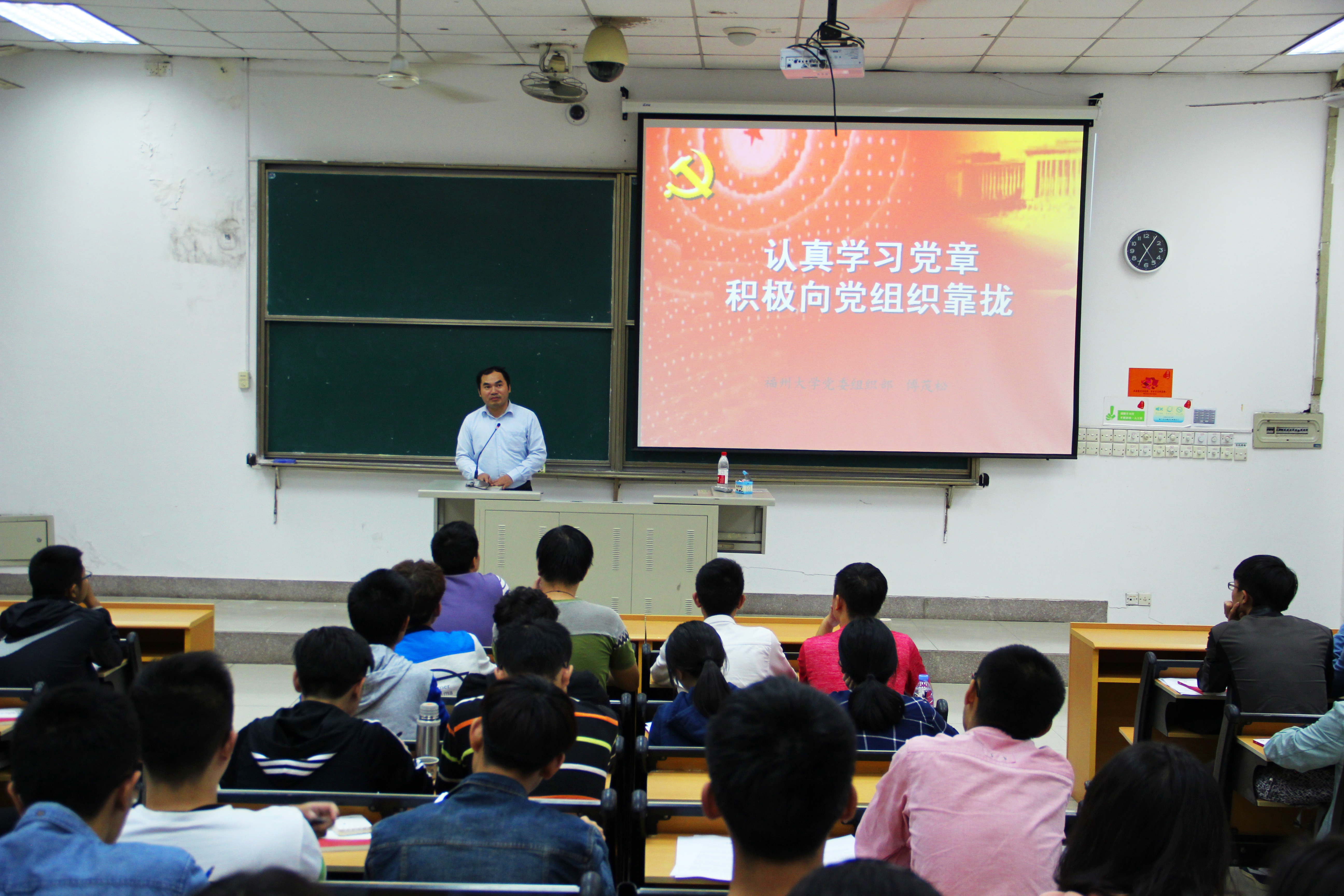 开班仪式结束后,校党委组织部傅茂松组织员给学员们做了第一讲报告《认真学习党章,积极向党组织靠拢》。他从“政治上入党、思想上入党、组织上入党、行动上入党”四个方面为学员做了深刻的阐述。同时,傅老师向学员们介绍党的结构并结合十九大新的党章向学员们提出党的总体要求,希望每个同学都能严格要求自己,努力成为一名合格的共产党员。