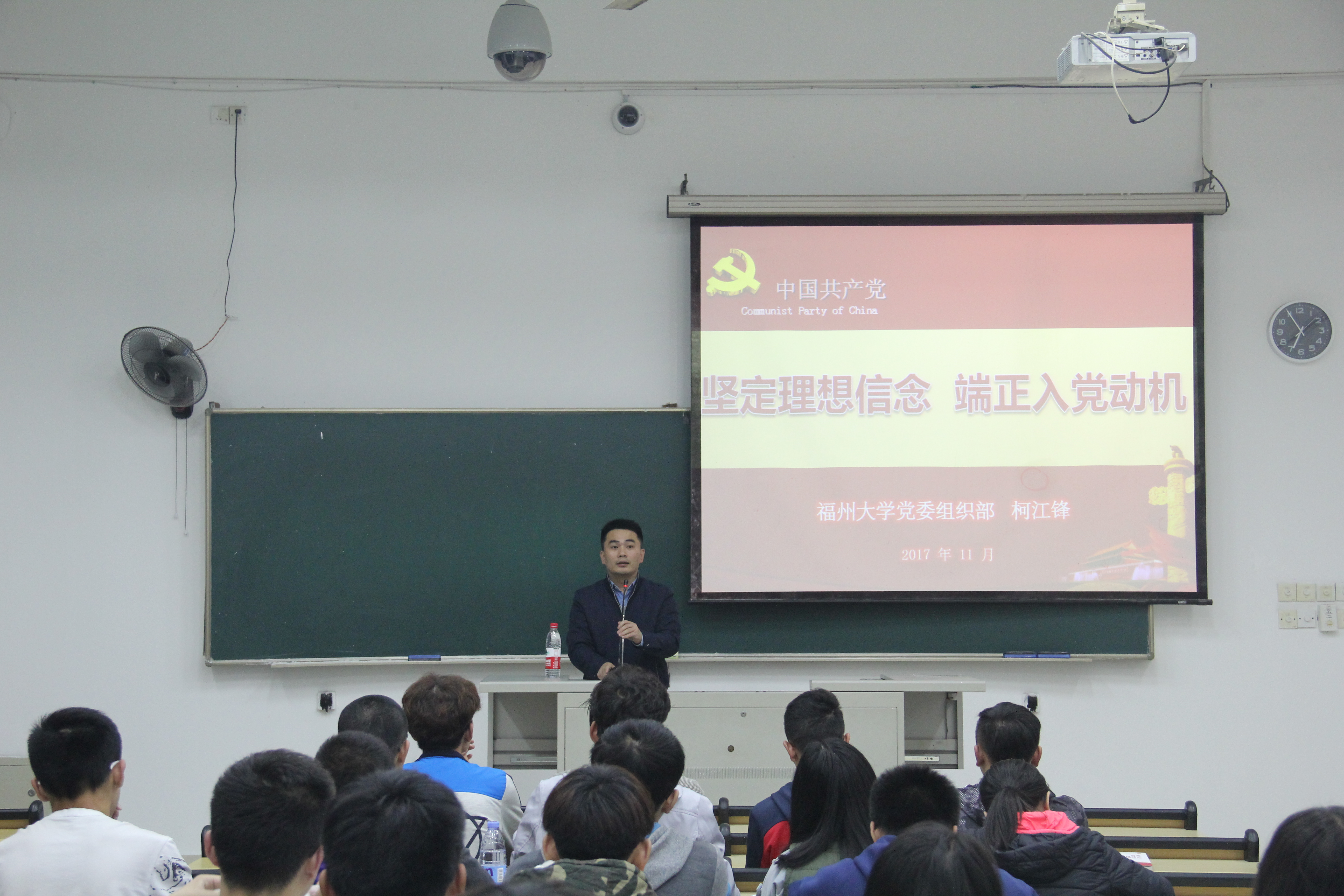 2017年11月21日,紫金矿业学院第十一期分党校第三讲于东三-101顺利举行,本次培训班以“坚定理想信念,端正入党动机”为主题,邀请了校组织部柯江锋老师担任讲,院团委书记李金土老师主持了本次培训。