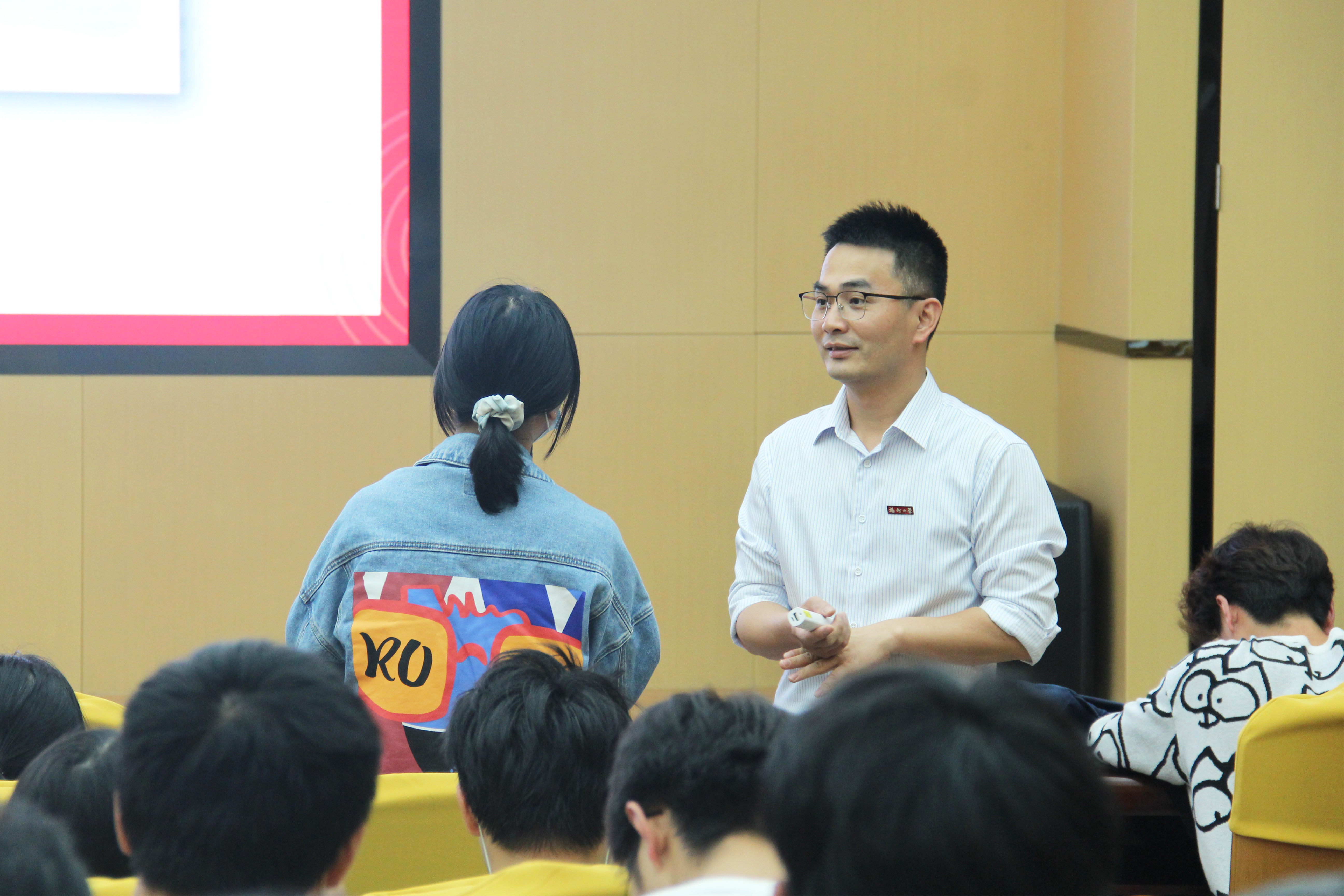 党课开始,柯老师首先向学员们强调了端正入党动机的重要性,并围绕着“为什么要端正入党动机”、“端正入党动机的意义”、“端正入党动机的途径”三个方面展开了端正入党动机的深刻教育。在随后的课堂讨论环节,学员们积极发言,纷纷讲述自己的入党动机和决心。柯老师对学员的发言作出点评并强调了唯一正确的入党动机是“全心全意为人民服务,不惜牺牲个人的一切,为实现共产主义奋斗终身。”此外,柯老师还结合党的性质、党的宗旨及党的奋斗目标教育学员们应该通过不断学习党的知识来端正入党动机,将其内化于心,外化于行。柯老师还从我国近代发展历程入手,结合自身的学习经历勉励广大学员要保持文化自信和民族自信,并通过不懈努力实现自身的价值。