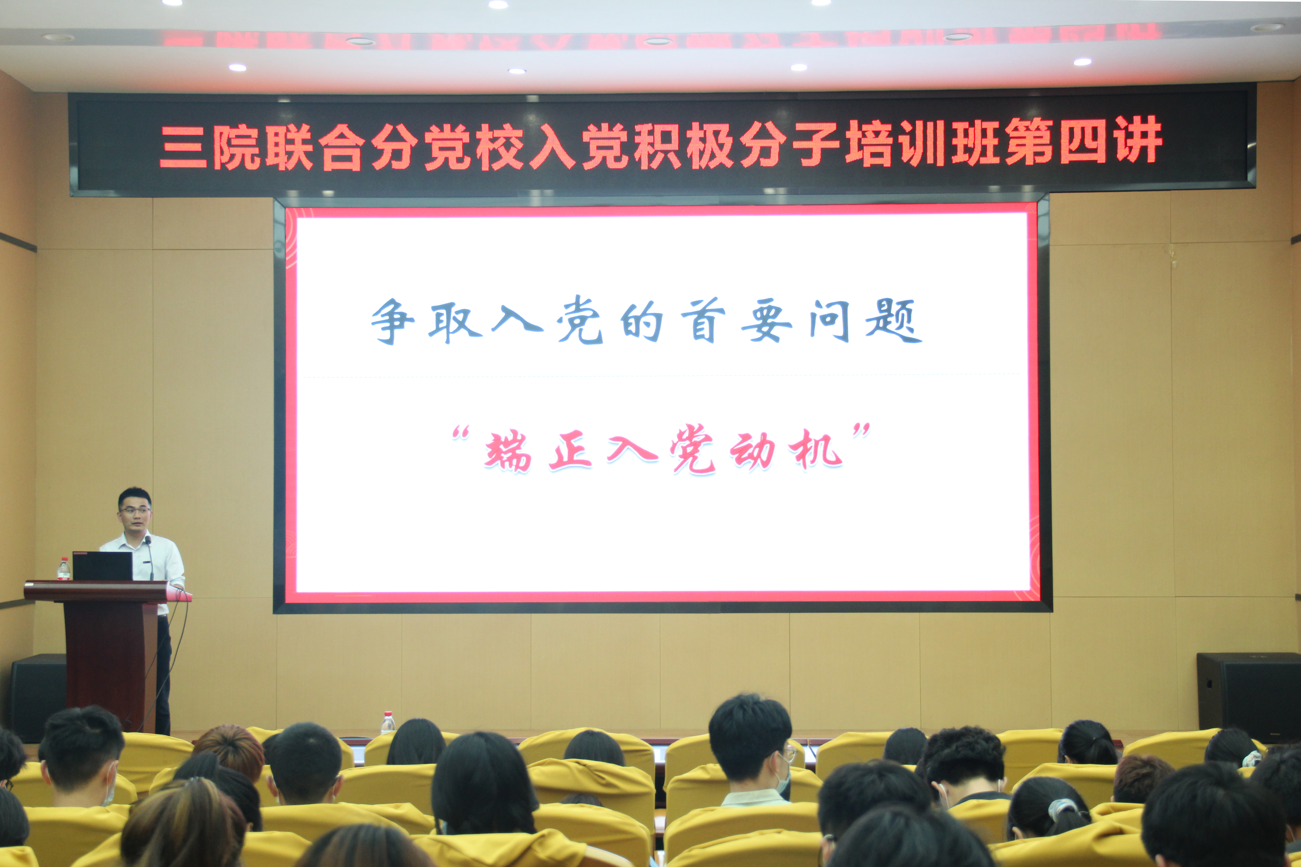 4月22日19:00,成人影视分党校第十五期入党积极分子培训班第六讲党课于黄廷方楼一楼报告厅顺利举行。本次党课以“坚定理想信念,端正入党动机”为主题,由校学生工作部柯江峰老师主讲,成人影视第十五期分党校培训班全体学员参加。