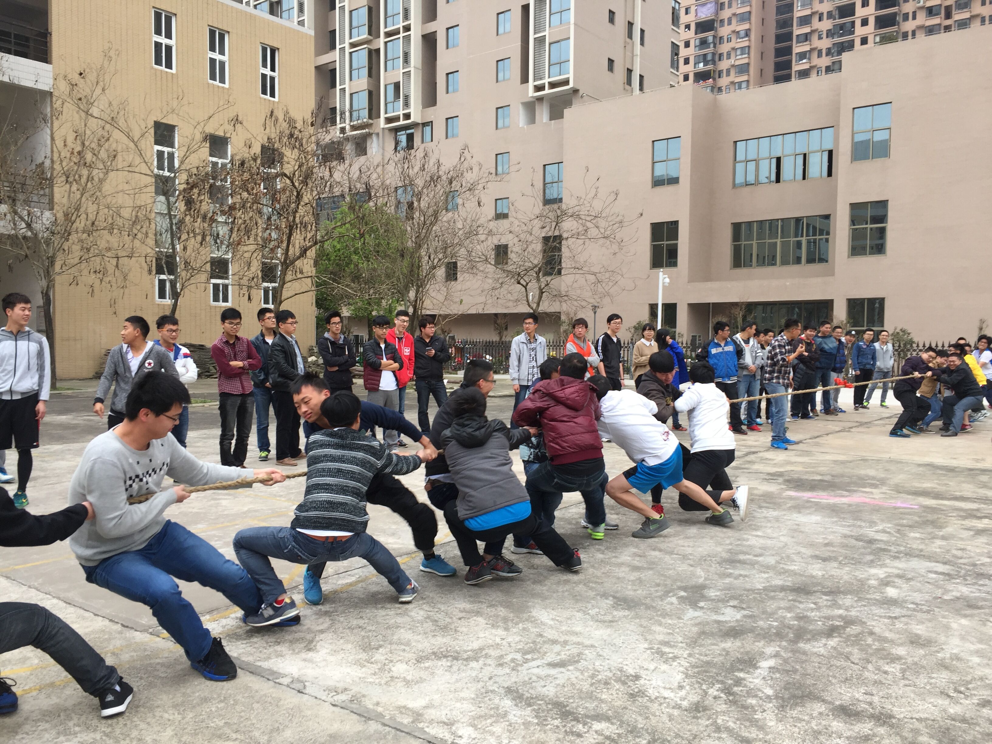 参赛队伍以班级为单位,每队15人。当比赛的哨声响起,队员们卯足了劲拼命往后拉,比赛过程中,各队参赛队员努力拼搏,无论是场上还是场下,气氛都异常激烈。经过几轮比赛,最后资源二班获得了第一名。