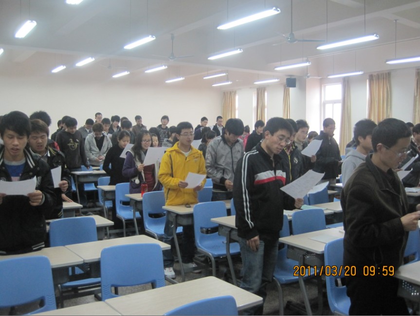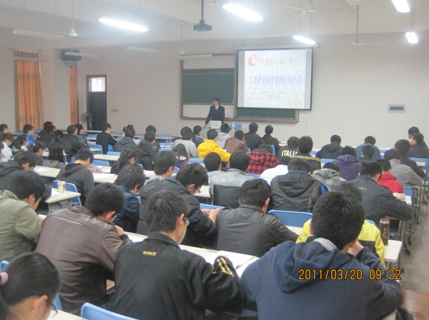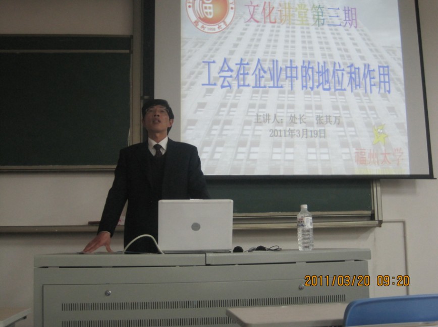 3月19日上午九点,上杭教学基地文化讲坛第三讲如期开讲,本期讲坛邀请到的是紫金集团公司党群工作部职工处副处长张其万先生。本期讲坛的主题是工会在企业中的地位和作用。成人影视上杭教学基地的全体的师生共同参加。张其万副处长以紫金集团为例,简述了集团在逐步发展壮大过程中对职工文化生活的关注和重视,并强调组织开展丰富的职工文化生活在调动员工积极性,培养职工对企业的归属感等方面的重要作用,从而凸显出工会在企业发展中的重要地位。随后,张处长简单介绍了一些唱歌的技巧以及乐谱基础知识,并详细阐述了《紫金矿业之歌》的创作背景,通过介绍,在场师生更深地理解了“特别能吃苦,特别能战斗”的紫金精神,并深受鼓舞。最后,张处长教大家唱《紫金矿业之歌》,本期讲坛在激昂的歌声中圆满结束。