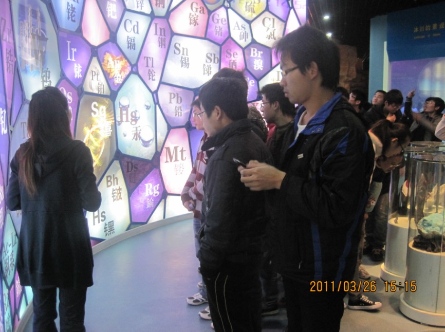 3月25日下午,上杭教学基地2008级采矿专业工程专业师生,在继2008级资源勘查专业同学后,参观了上杭教学基地的紫金地质矿产博物馆。紫金地质博物馆分为四层,其中包括三层展馆,分别是:序厅、展厅(4个)及3D影视厅。其中四个展厅的主题分别是:揭开地球的面纱、地球的物质世界、丰富的地下宝藏和飞速发展的紫金。在讲解员的带领下,大家穿越过各种声光电技术、模拟仿真技术营造的场景中。面对那些生动形象的地质学现象和各种珍贵的实物标本,大家在感慨大自然神奇的同时,更为人类开发自然资源的聪明才智而骄傲。