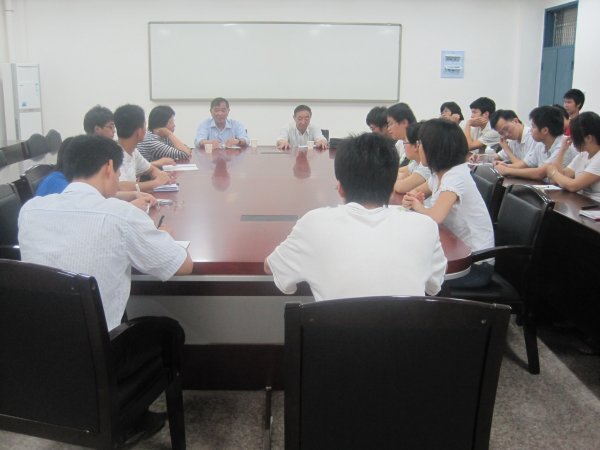 同学们先向两位老师汇报基地的学习、生活情况。大家表示,基地运行一切正常。饮食、住宿环境较好,运动设施完善,图书馆、博物馆和实验室建设也在积极进行中。在“双师型”教学方面,同学们畅所欲言,提出了一些老师在授课方面存在的不足。并在基地课程设置、“双师型”教师选拔与培养等方面提出自己的意见和建议。