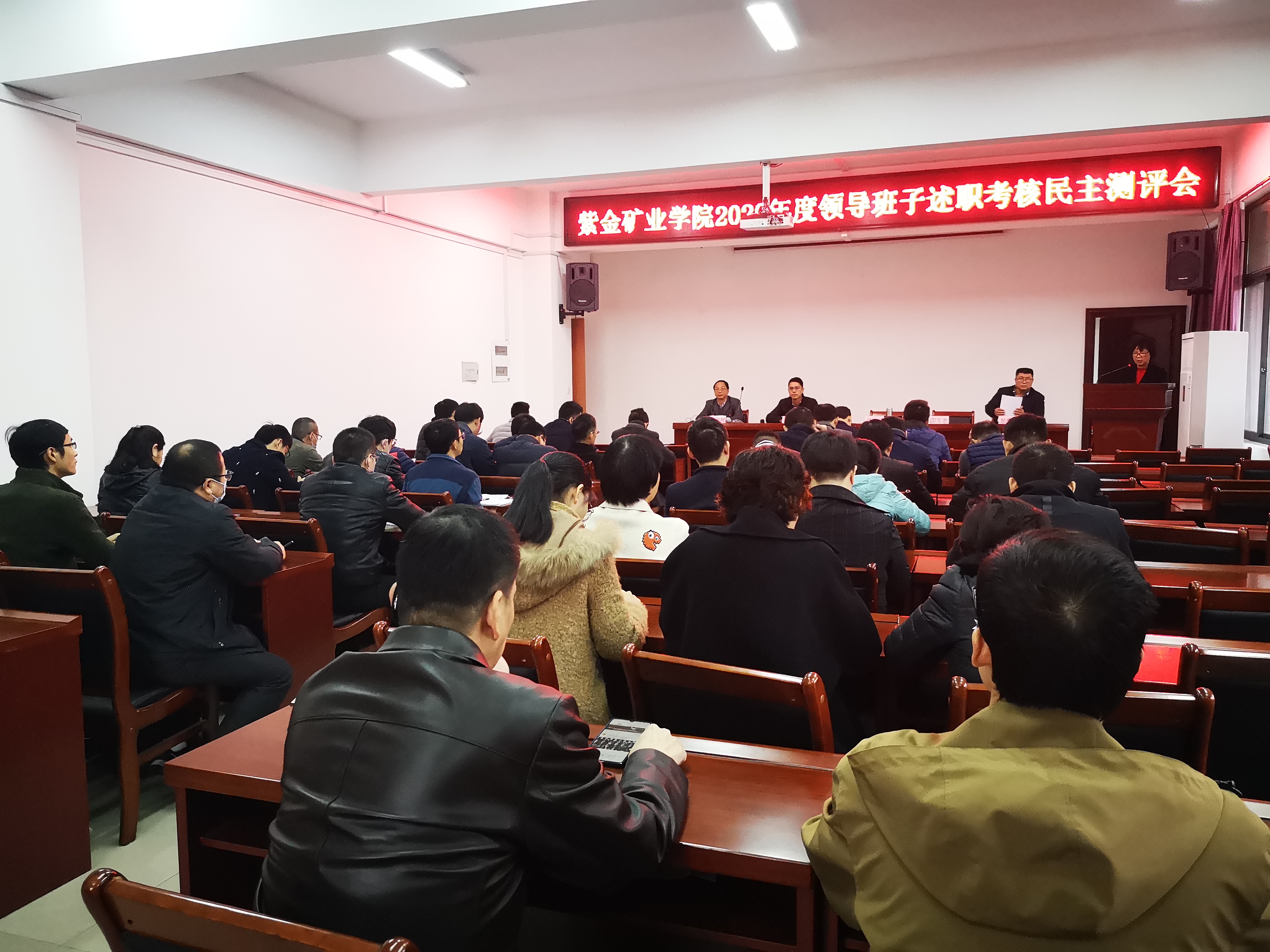会上,院党委书记徐雪玉代表班子做了2020年度工作汇报,随后党政班子成员分别从德能勤绩廉等方面对自身2020年的工作进行了汇报,与会人员填写了《紫金矿业学院领导班子2020年度考核民主测评表》。