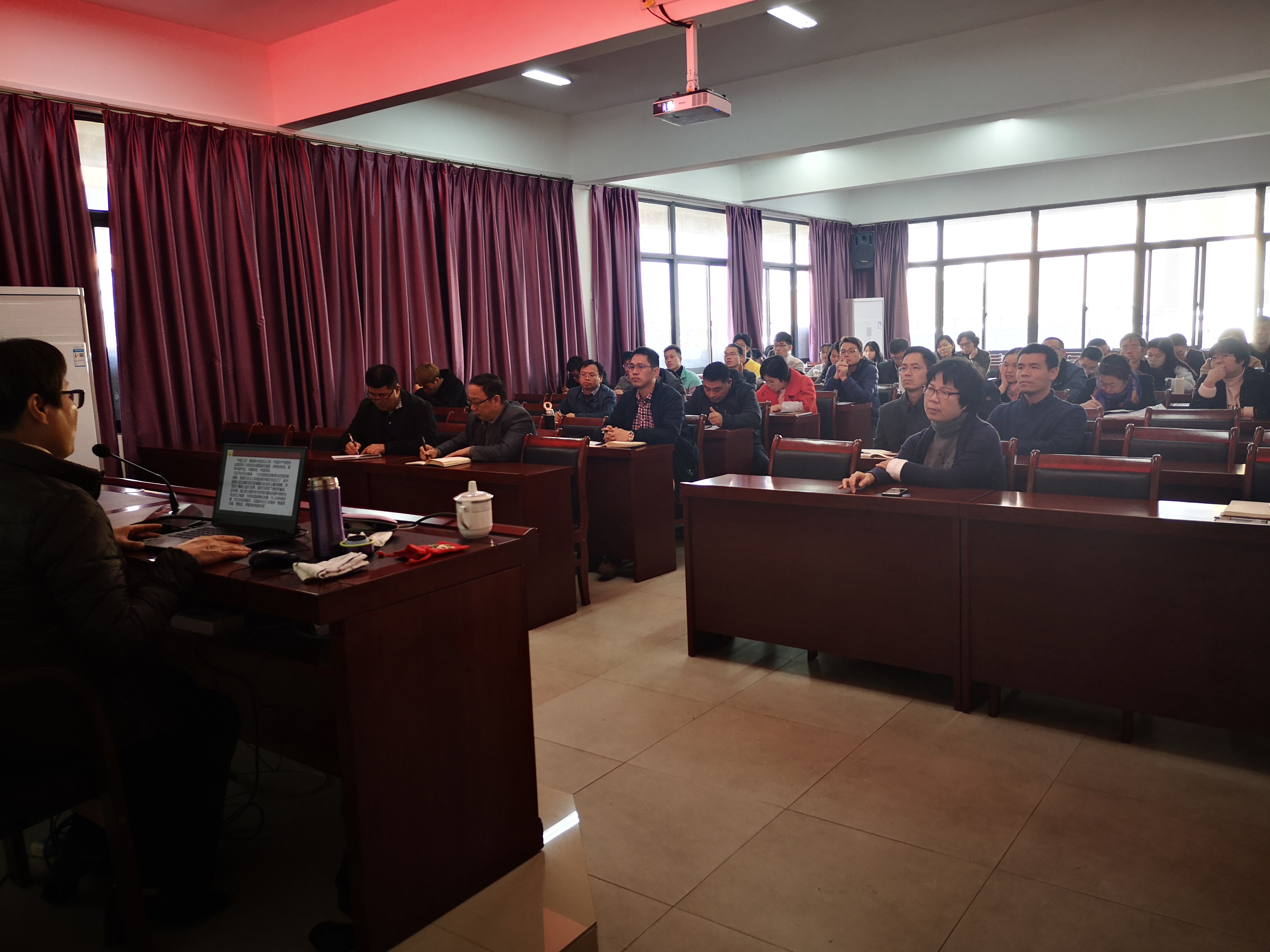近两小时的讲座让广大师生员工更加深刻地理解了十九届四中全会精神,增强了道路自信、理论自信、制度自信、文化自信。