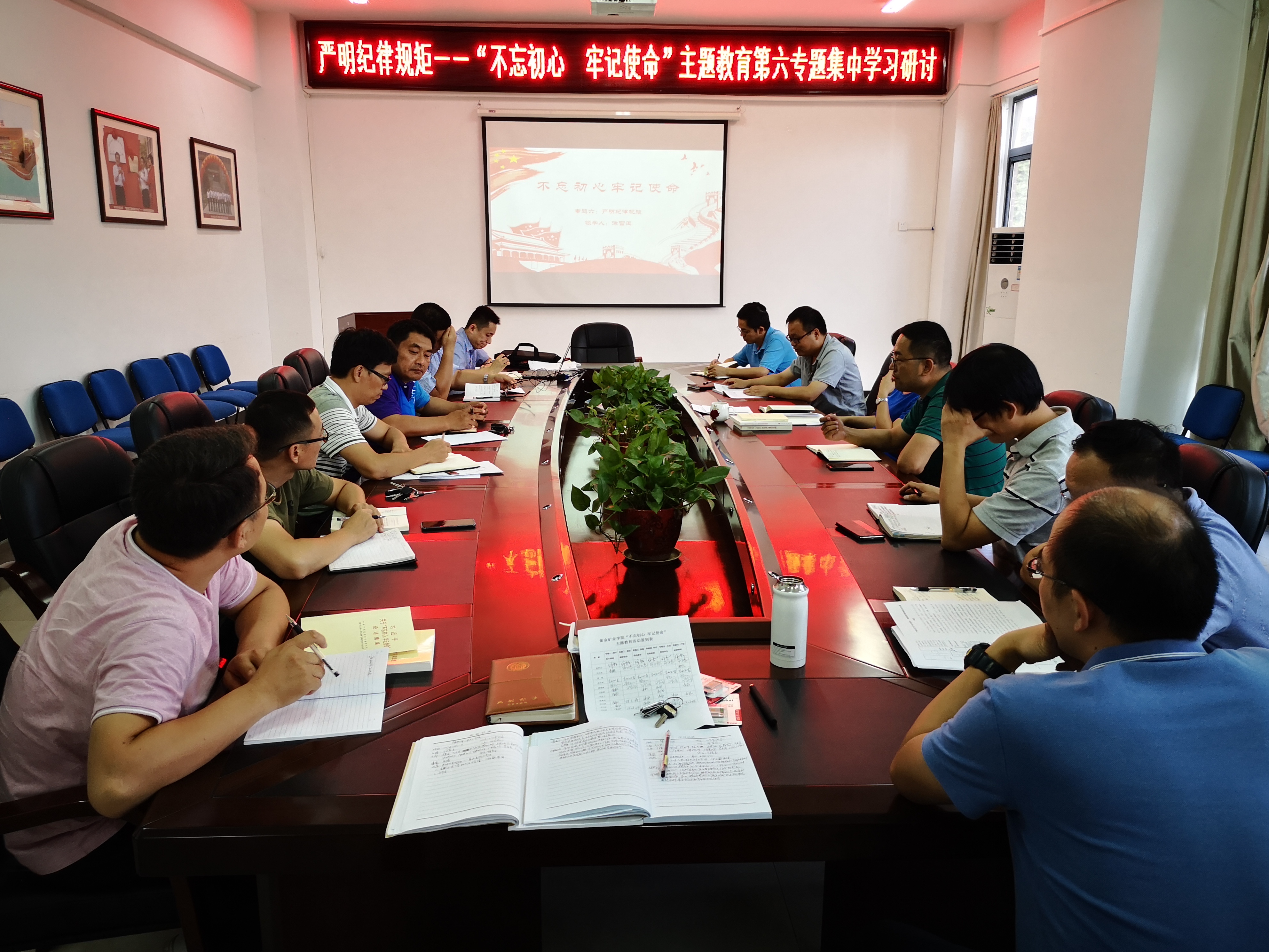 会议进行了“不忘初心、牢记使命”主题教育第六专题“严明纪律规矩”的集中学习研讨。