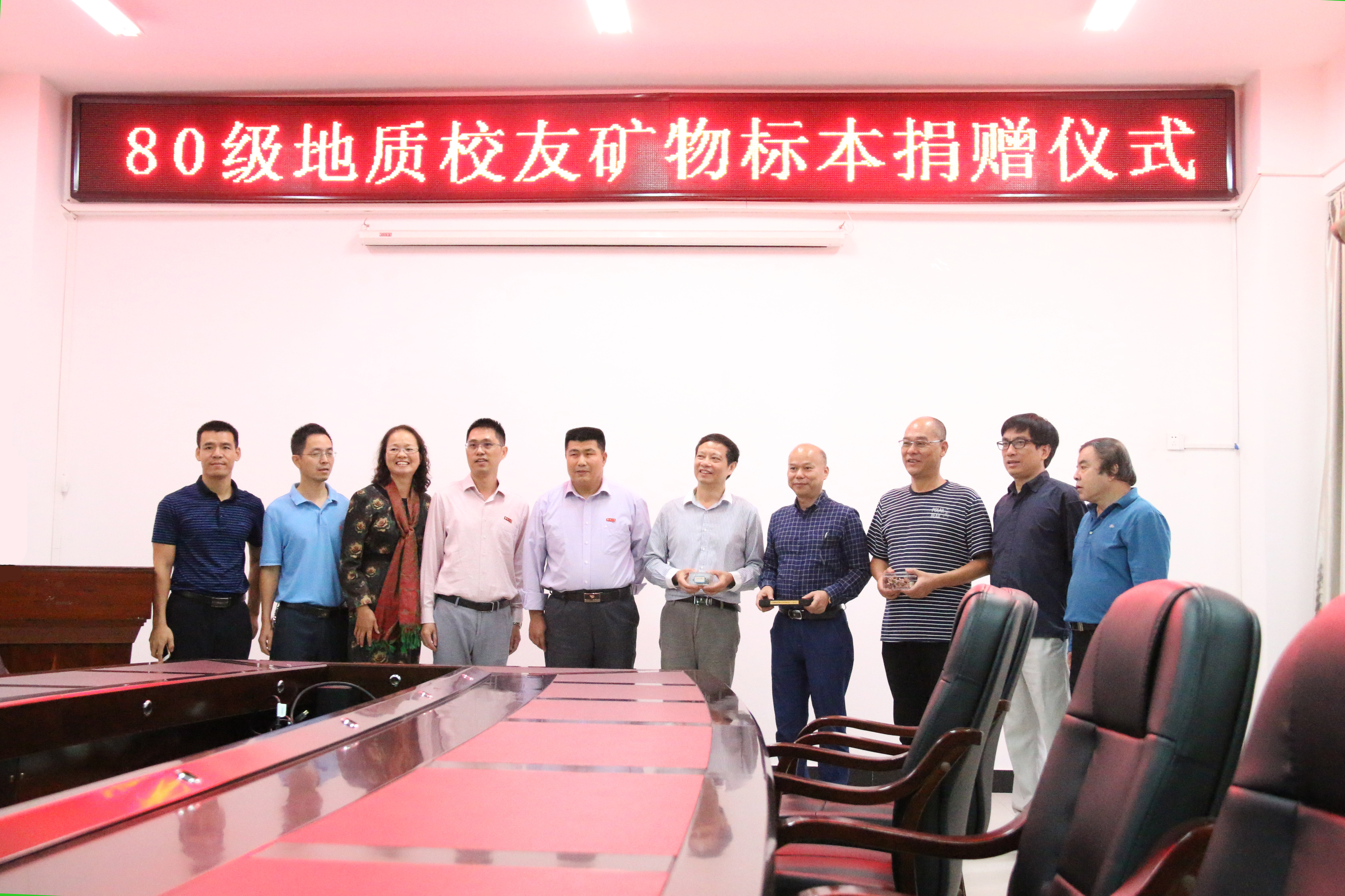 期间,校友向地质博物馆捐赠了“自然银”、“自然铜”等金属元素矿物,紫金矿业集团公司总裁蓝福生等校友代表与学院领导双方互赠标本和证书。