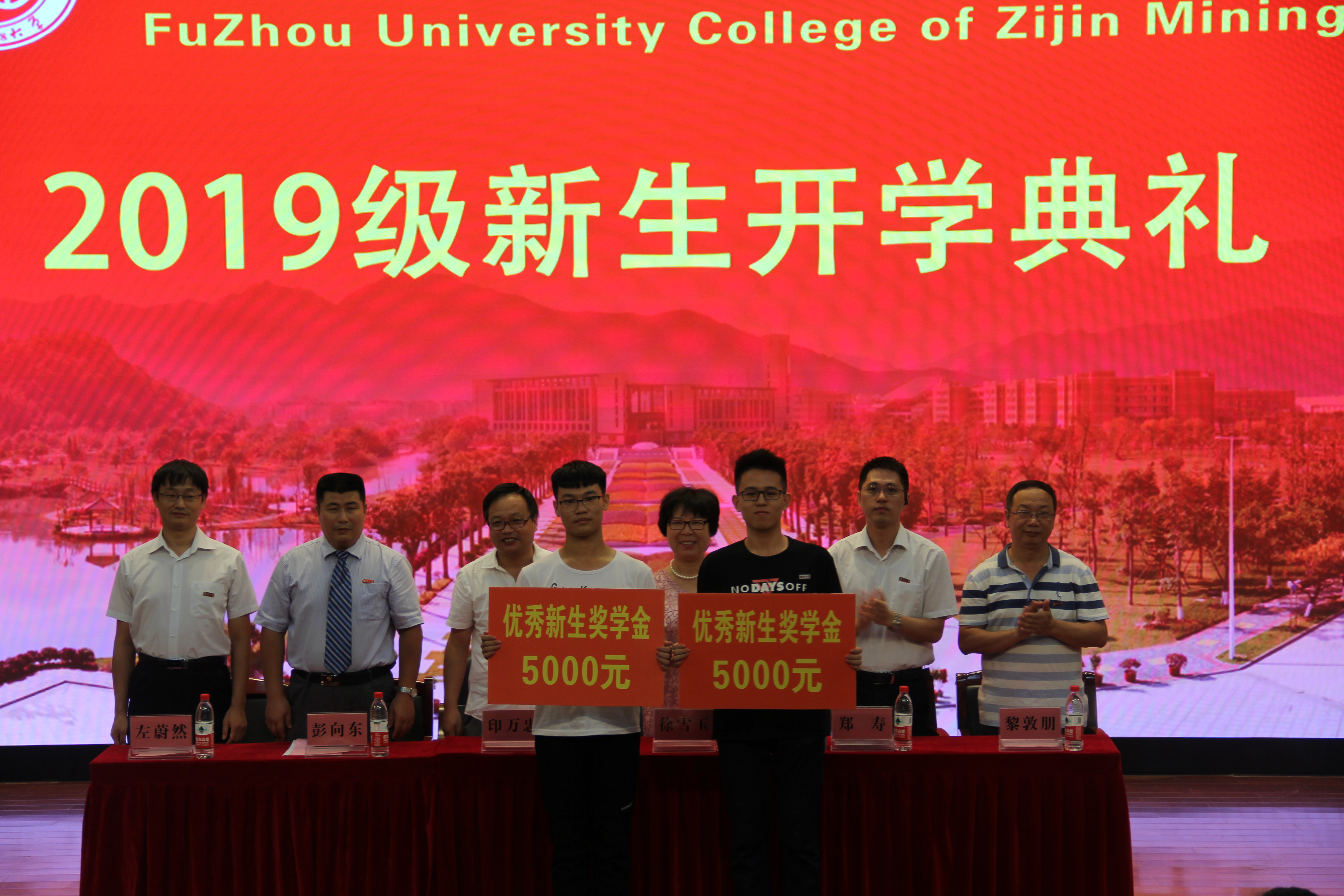 在威武庄严的国歌声中,开学典礼拉开了帷幕。首先由彭向东副院长宣读“紫金矿业学院推免生奖励金”及“紫金矿业学院本科优秀新生奖励金”的获奖名单,并由主席台领导为获奖新生颁奖。