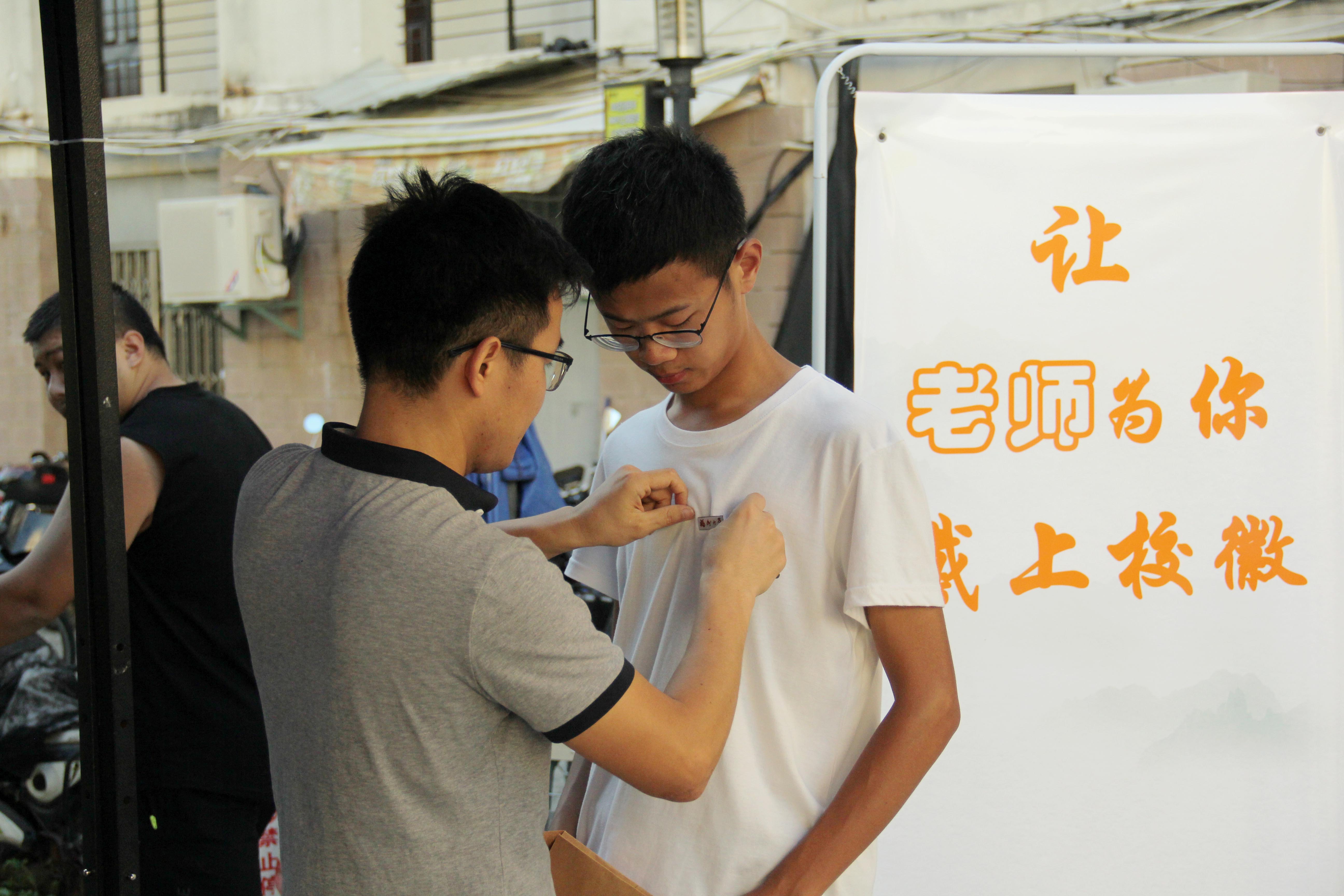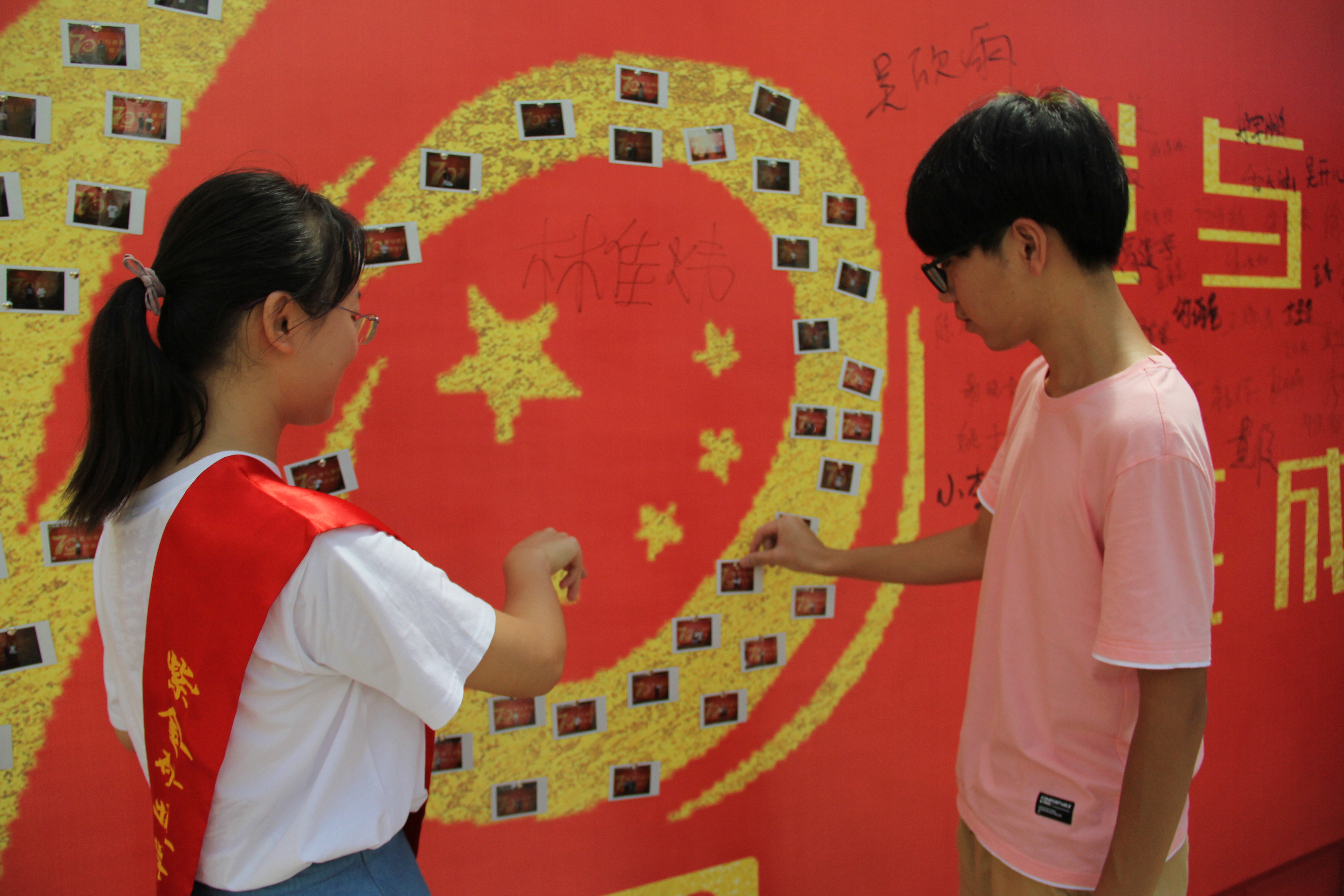 此外,成人影视在新生注册环节中巧妙地融入了新中国成立70周年的爱国元素。在“70周年我与祖国共成长”的灯布背景前,新生手持国旗与录取通知书,拍摄来到学院的第一张照片。这些照片由新生亲手悬挂在背景的“70”字样上,用以表达“我与祖国共成长”的概念。注册完毕后,由学院领导、辅导员、班导师等为新生佩戴校徽,意喻着新生正式成为一名优秀的福大人、紫金人。