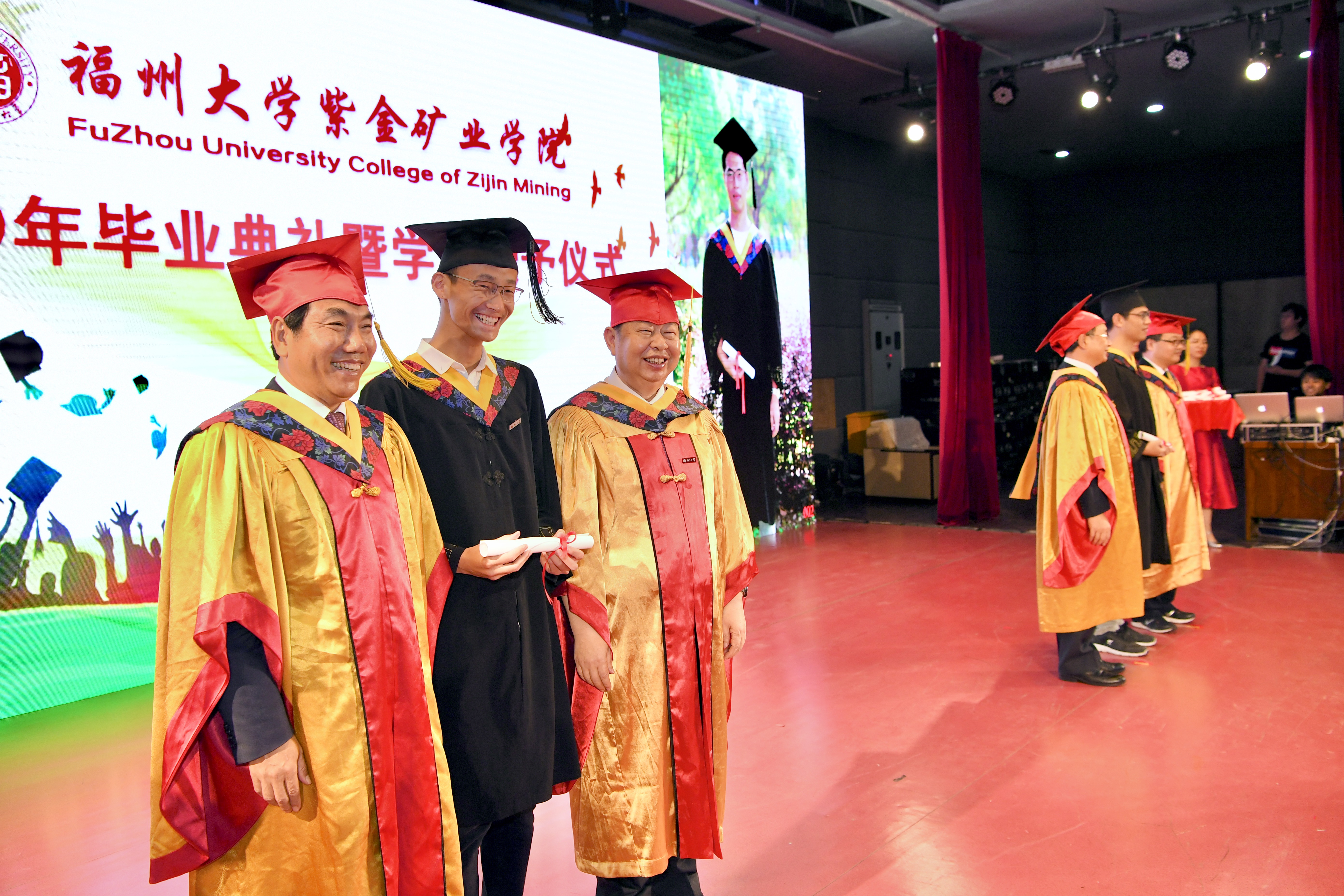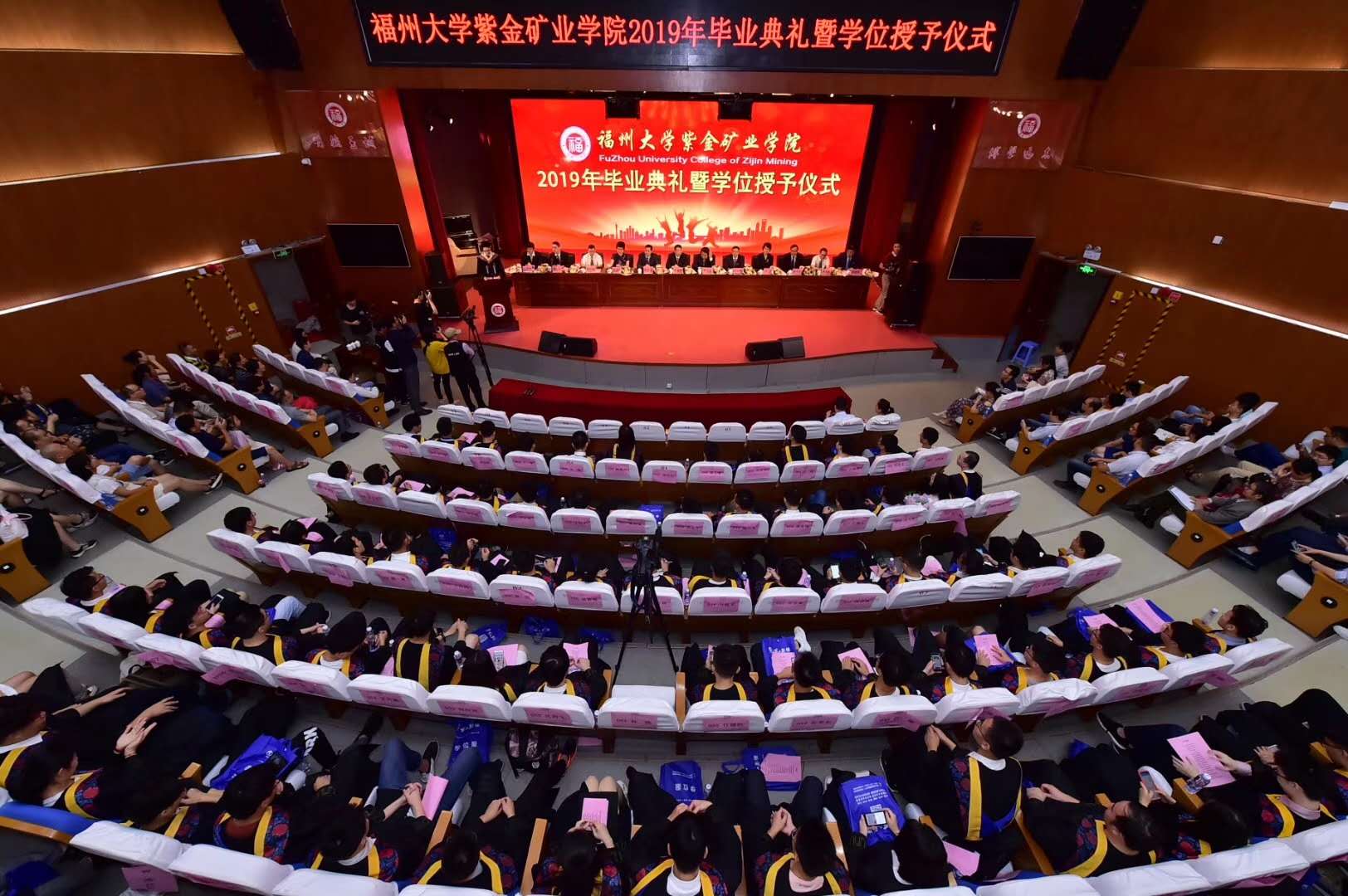 2019年6月23日,紫金矿业学院2019年毕业典礼暨学位授予仪式在成人影视 图书馆博学厅隆重举行。紫金矿业集团董事长陈景河、福建中海创集团有限公司执行董事陈米力先生、紫金矿业集团董事长助理郑友诚、紫金矿业集团人力总监黄远光、成人影视 党委书记陈永正研究员、成人影视 党委常委、副校长黄志刚教授、成人影视 教务处处长于岩教授、紫金矿业学院党委书记徐雪玉、紫金矿业学院院长印万忠教授、学院全体教职工、部分毕业生家长、全体2019届毕业生和低年级学生参加本次典礼。典礼由紫金矿业学院党委副书记郑寿主持。