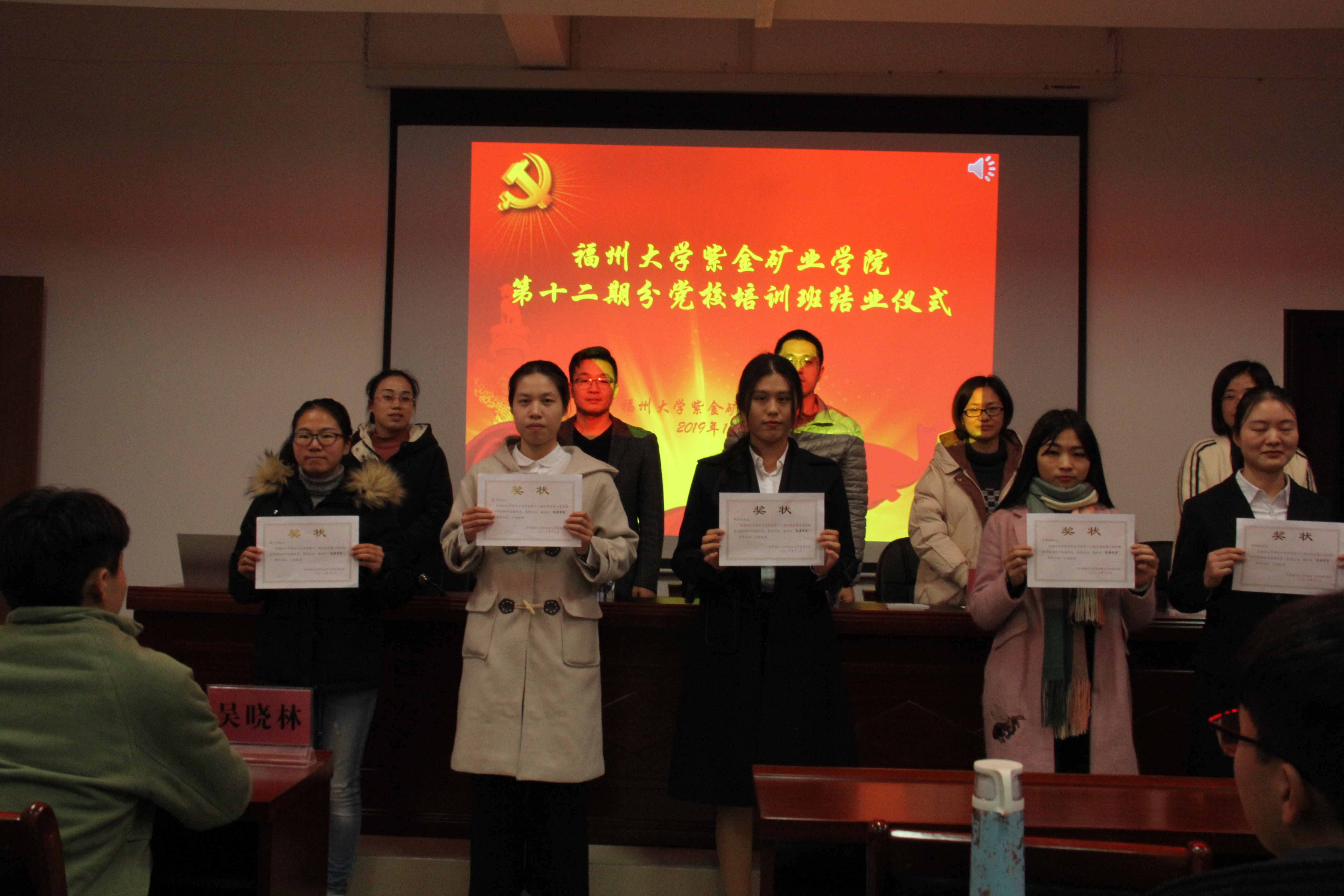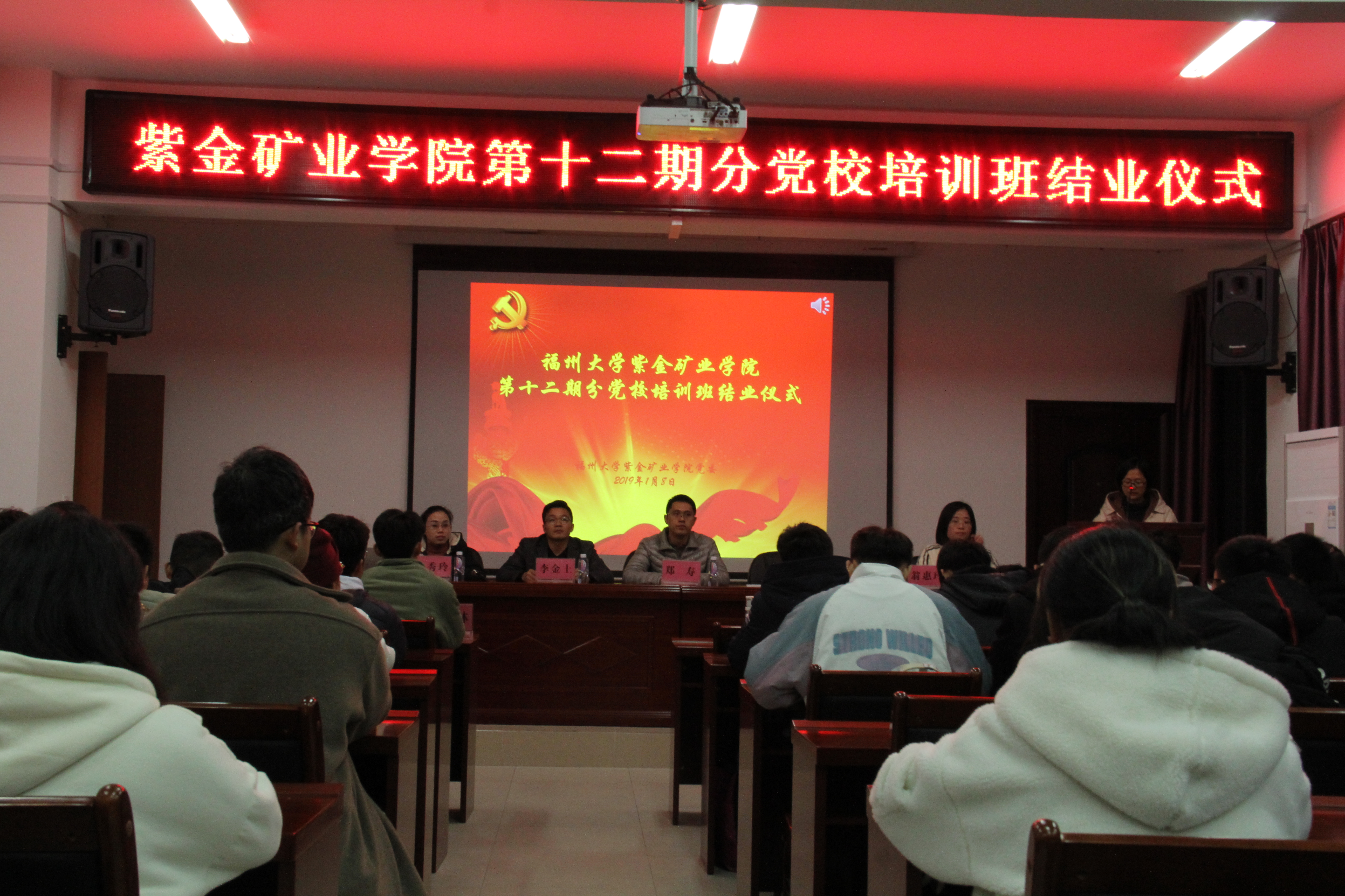 2019年1月8日晚,紫金矿业学院分党校第十二期入党积极分子培训班结业典礼在紫金楼304顺利开展。院党委副书记郑寿,院团委书记李金土,院党委组织员翁李焱,各年级辅导员、兼职辅导员出席了本次结业仪式。