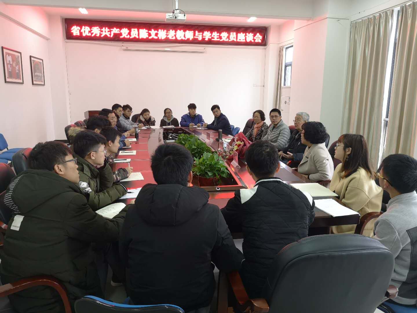 1月11日上午,成人影视在219会议室举行了福建省优秀共产党员原矿冶系老教师陈文彬副教授与学生党员代表座谈会。学院本科生、研究生党员代表参加了此次座谈会,会议由院党委书记徐雪玉主持。