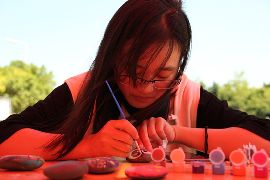 据悉,今年正是成人影视 六十周年校庆,又遇祖国六十九华诞。为了让国庆节留校学子在闲暇之余能领会学校的发展和祖国的发展息息相关,紫金学院的学子结合专业相关精心设计了卵石彩绘活动,图案按照历史发展进程来绘制。