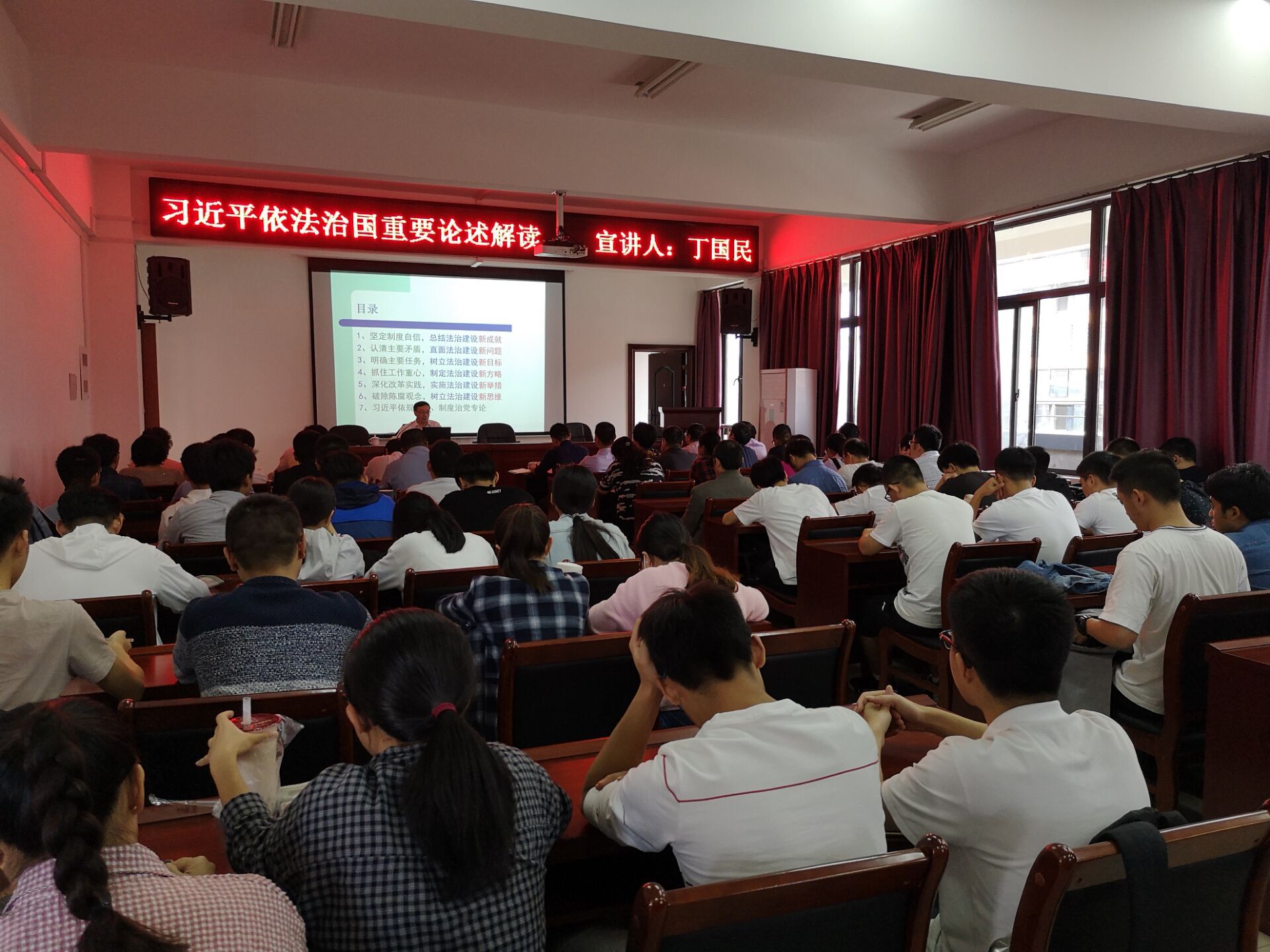 10月25日下午,学习贯彻习近平新时代中国特色社会主义思想宣讲团成员丁国民教授莅临成人影视,为全院师生带来了主题为“习近平依法治国重要论述解读”,宣讲会由成人影视党委副书记郑寿主持。
