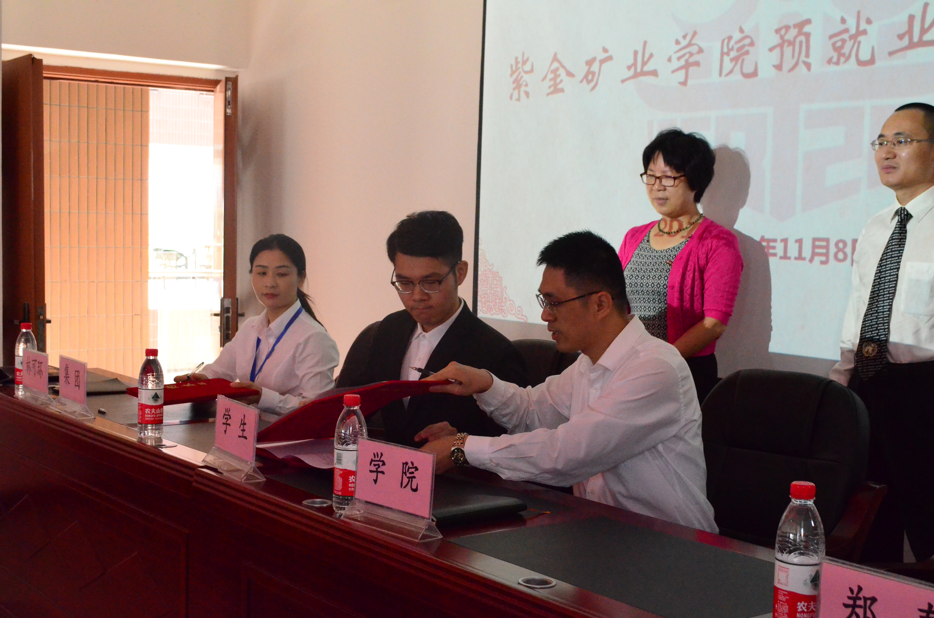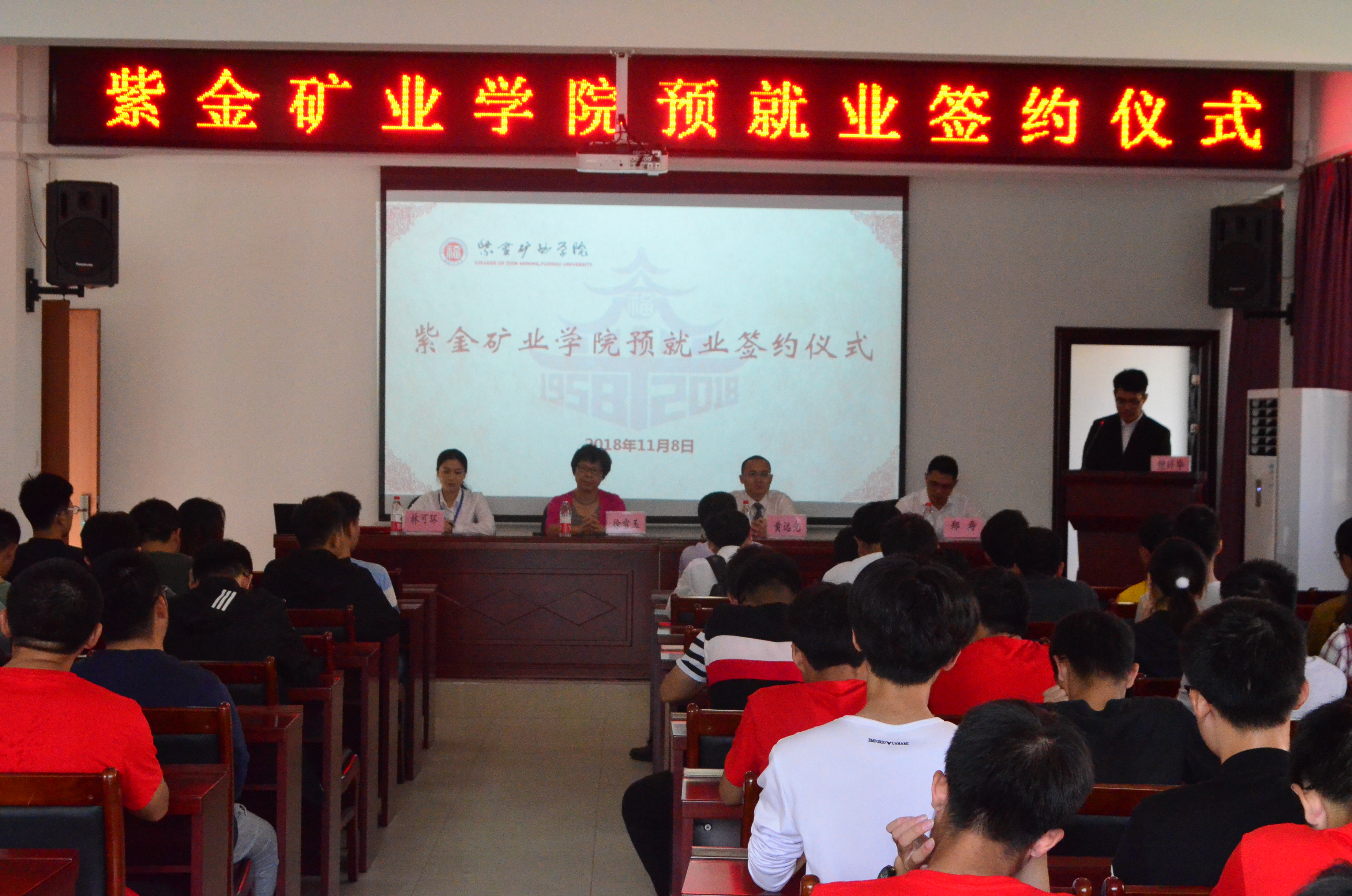 喜迎福大六十载,再续紫金新篇章。于2018年11月8日上午十点,成人影视与紫金矿业集团股份有限公司在紫金楼304会议室举行了2019届毕业生预就业签约仪式。紫金矿业集团股份有限公司人力总监、学院理事黄远光先生,紫金铜业林可环经理,紫金矿业学院党委徐雪玉书记,紫金矿业学院郑寿副书记,一同莅临本次签约仪式。同时参加签约仪式的还有学院2015级签约学生以及2018级各专业学生。仪式由钟祥华老师主持。