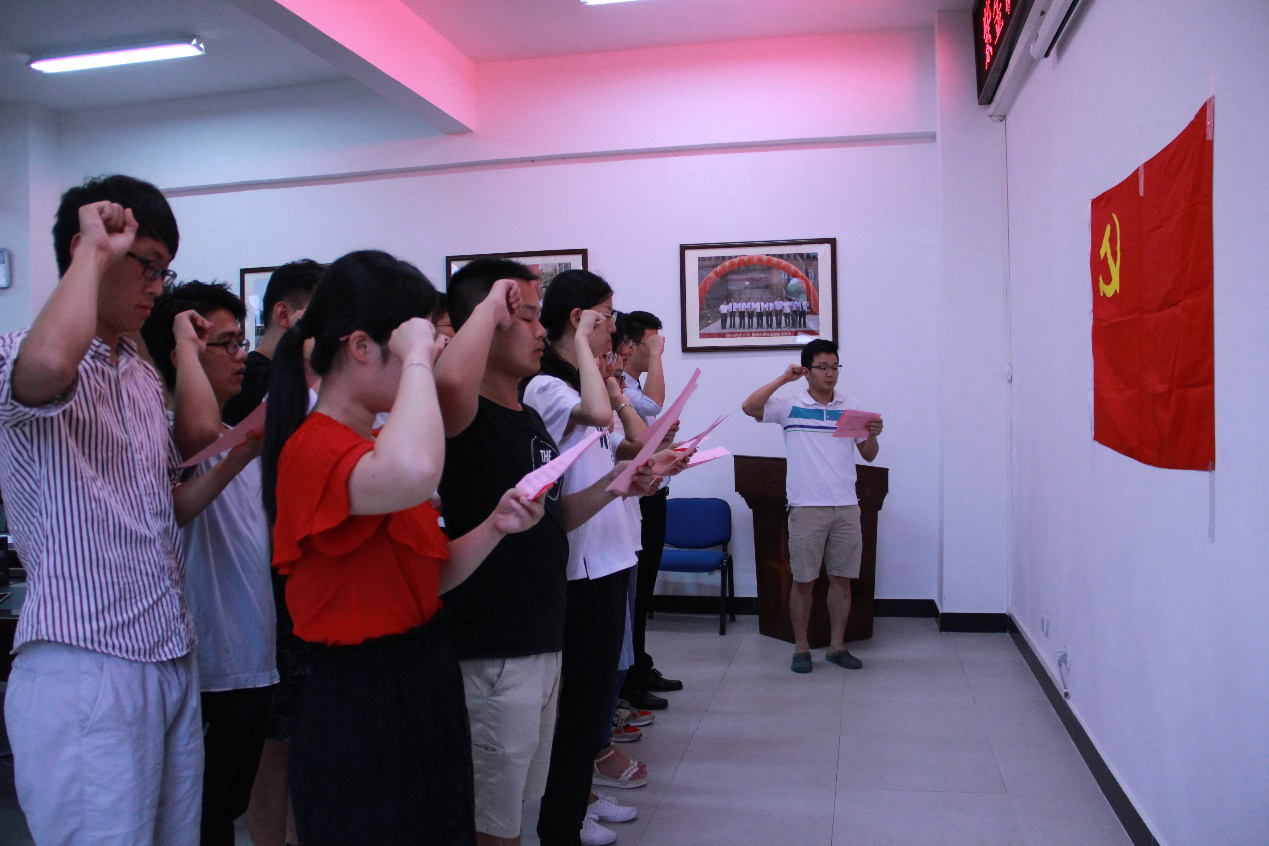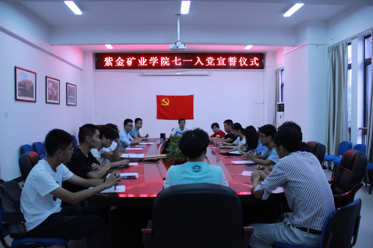 “我志愿加入中国共产党,拥护党的纲领,遵守党的章程,履行党员义务,执行党的决定,严守党的纪律,保守党的秘密,对党忠诚,积极工作,为共产主义奋斗终身,随时准备为党和人民牺牲一切,永不叛党。”2018年7月1日下午,紫金矿业学院七一入党宣誓仪式在紫金楼219会议室隆重举行。出席本次宣誓仪式的有院团委书记李金土,各年级辅导员以及全体新党员。仪式由辅导员翁惠玲主持。
