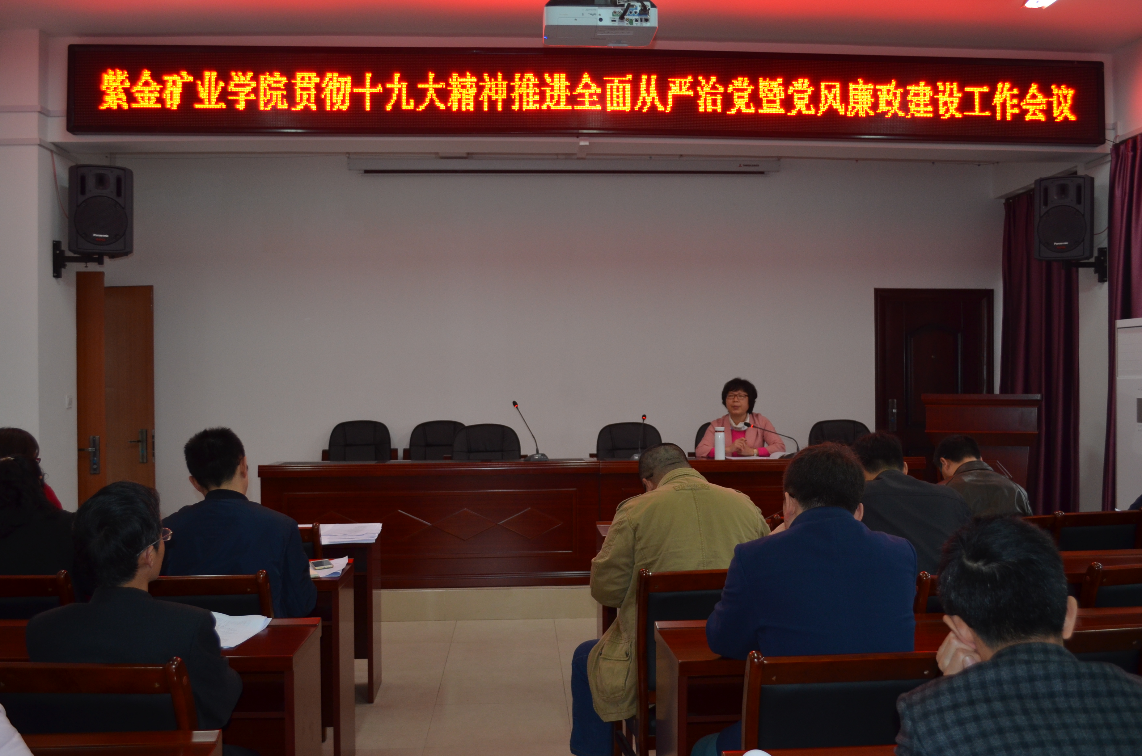 2018年3月15日下午,成人影视召开贯彻十九大精神推进全面从严治党暨党风廉政建设会议。学院全体在家教职工参加会议,会议由徐雪玉书记主持。
