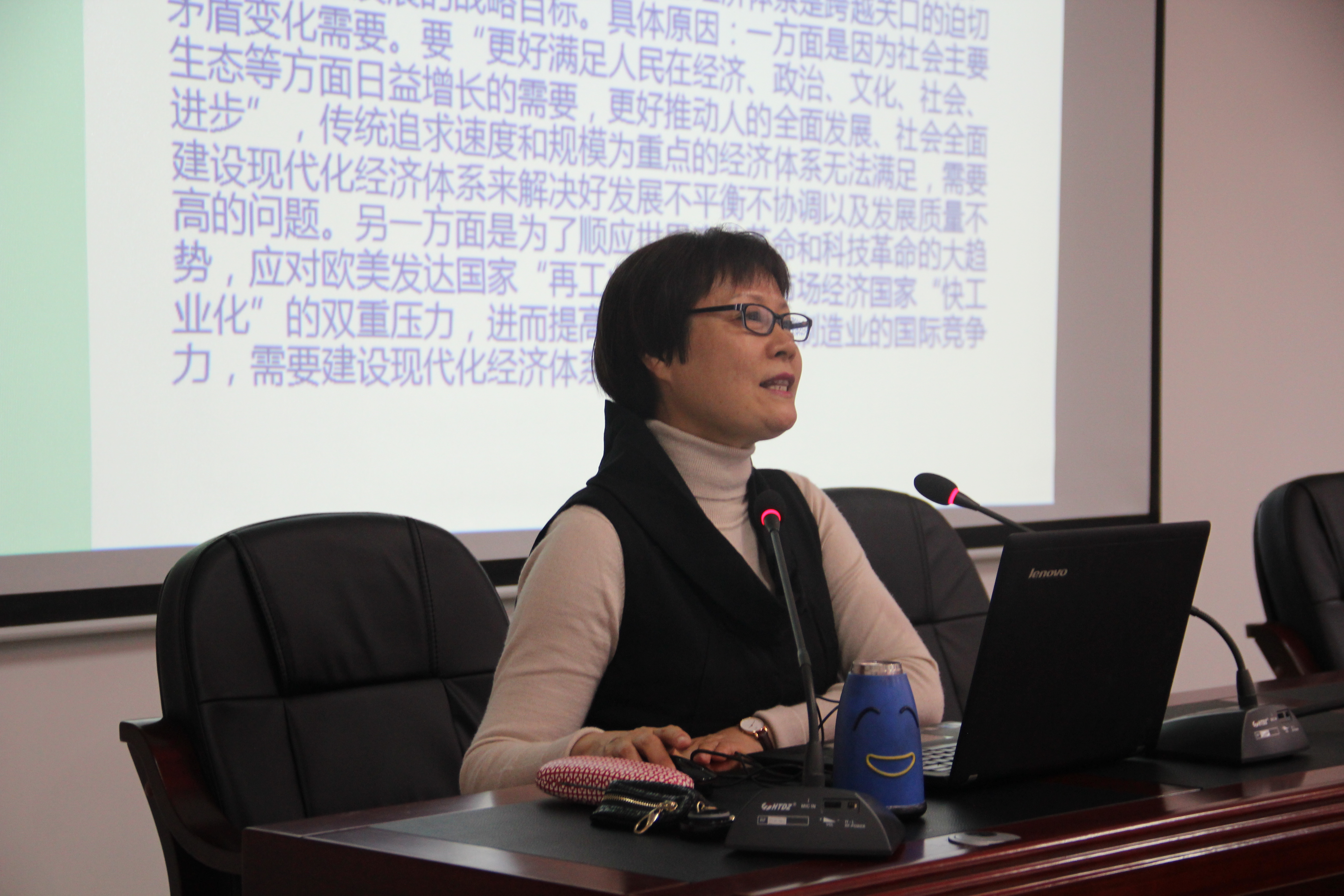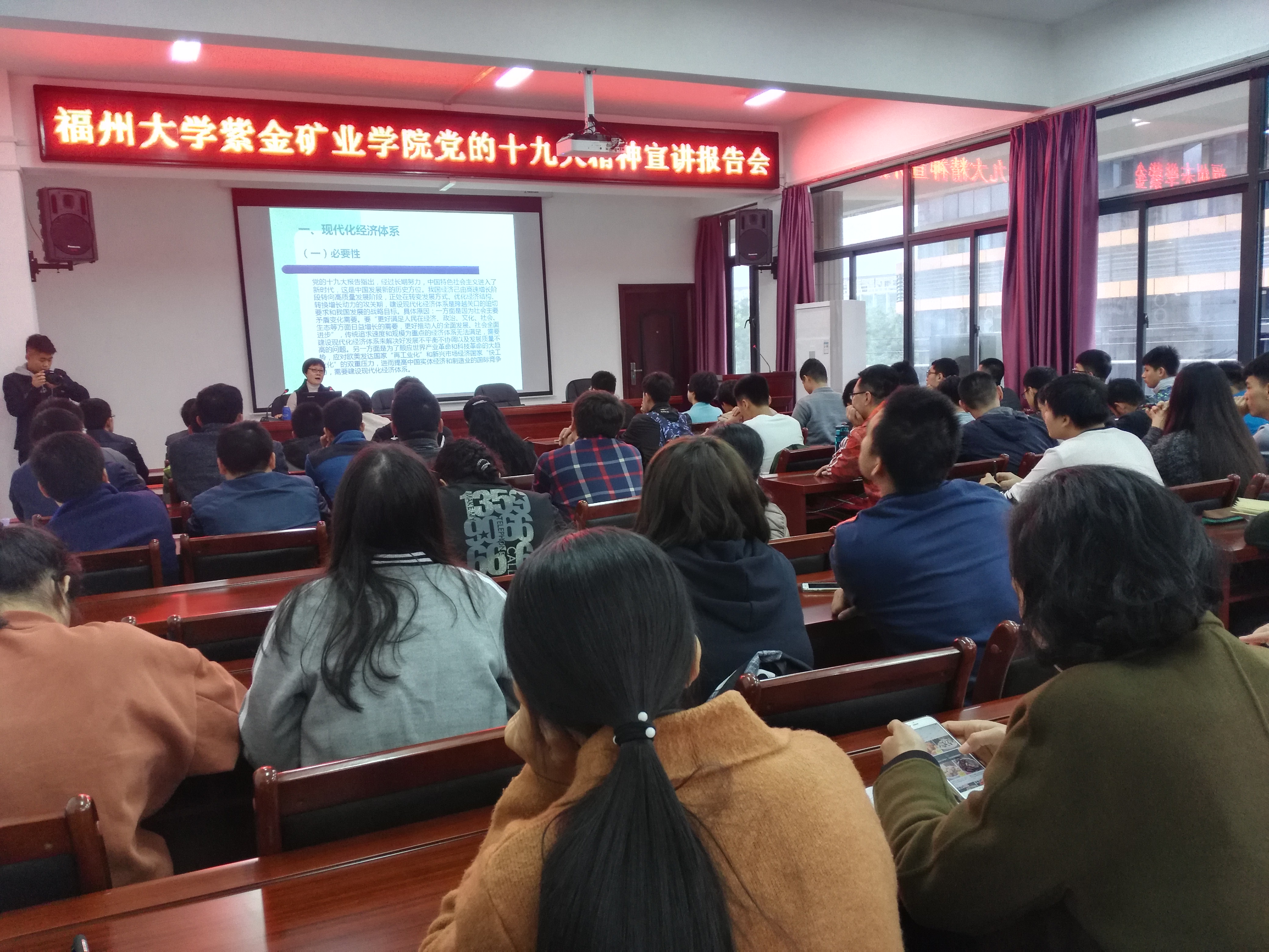 报告会上,王婷教授结合学习十九大精神的体会,从党的十九大重大意义出发对国家未来经济建设方面进行深刻、系统地阐述。王婷教授围绕“深化供给侧结构性改革,加快现代化经济体系建设”展开三方面的阐述。第一,在现代化经济体系建设中,她明确指出现代化经济对中国的必要性与核心内容。从中,她让我们领悟了现今中国的主要矛盾已经转化为人民日益增长的美好生活需要和不平衡不充分的发展之间的矛盾;第二,在供给侧结构性改革中,她向我们解释了供给侧结构性改革的意义、本质以及当前中国需要解决的核心问题;第三,王婷教授阐述了现代化经济体系建设与供给侧结构性改革的内在关联——以供给侧结构性改革为主线,加快现代化经济体系建设。