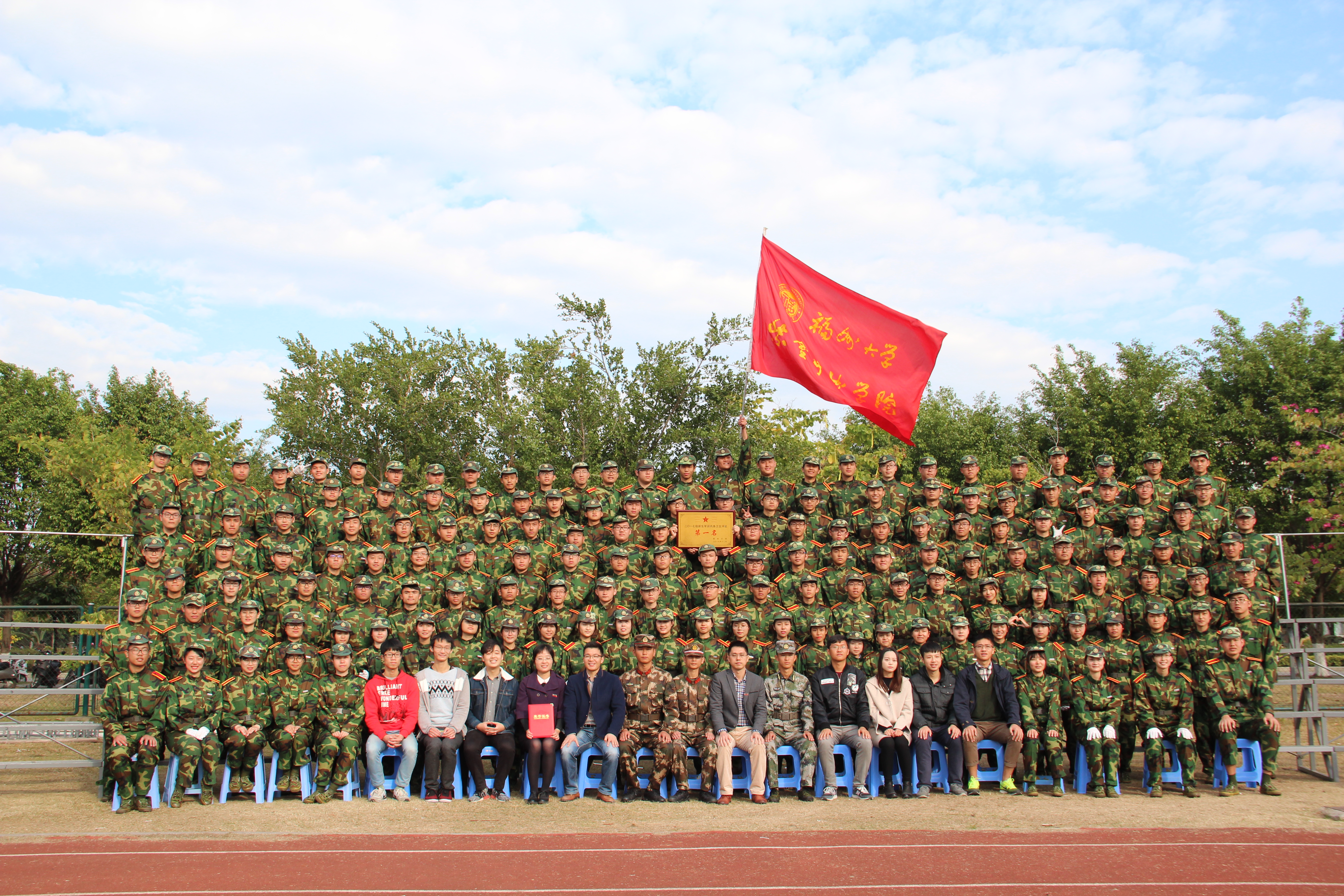 在全校师生的关注下,成人影视2017级101名同学精神饱满、自信从容踏上跑道。整齐划一的步伐,嘹亮的口号彰显了紫金人的蓬勃向上的精神面貌,得到全场掌声。在最后的总结表彰中,成人影视荣获2017级新生军训内务卫生第一名的好成绩,创造了建院以来在军训内务评比方面的最好成绩。此外,成人影视2017级辅导员翁惠玲老师荣获优秀军训辅导员荣誉称号。