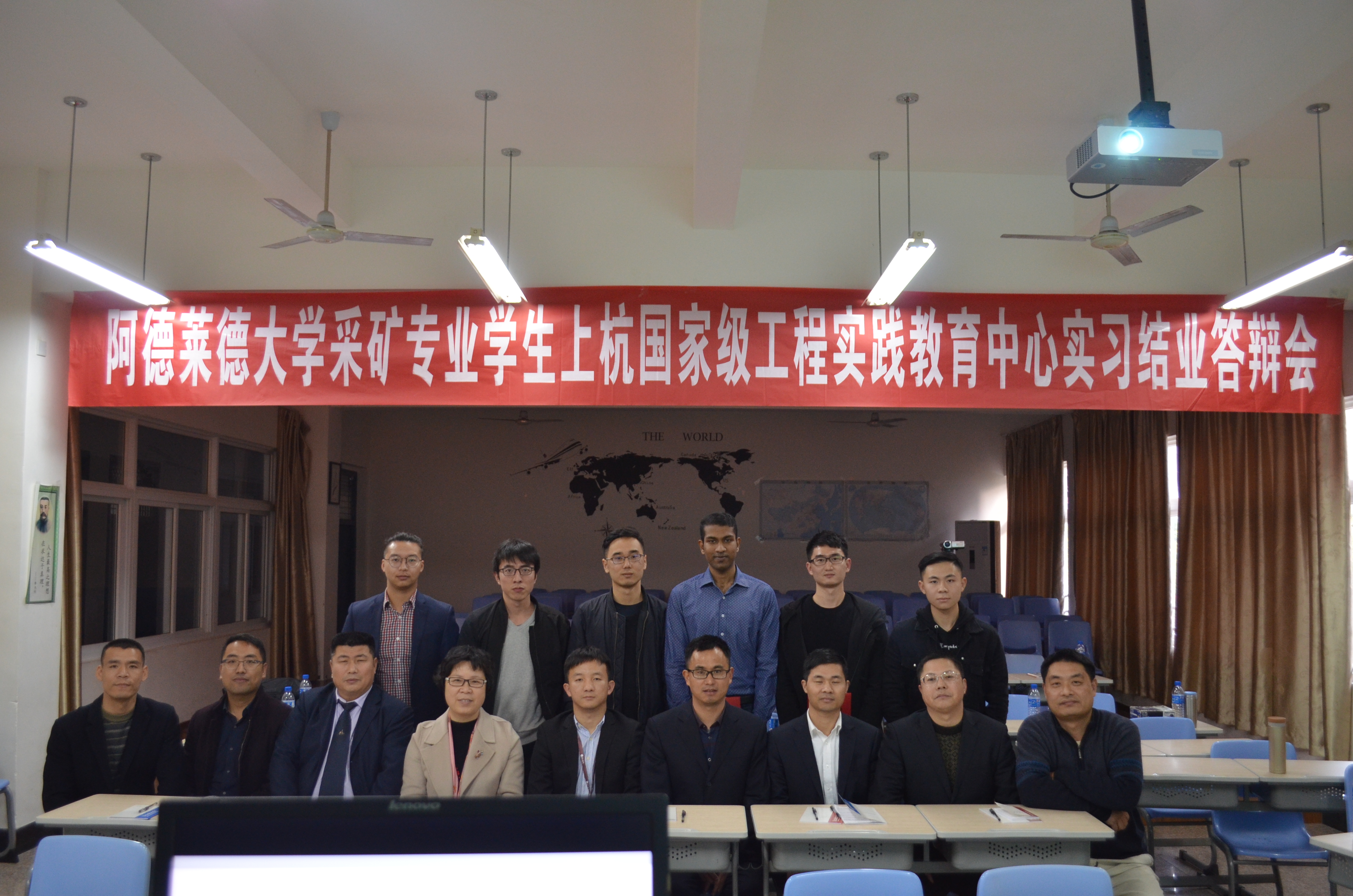 1月22日下午,阿德莱德大学来成人影视交流的6位采矿专业学生的实习结业答辩会在国家级工程实践教育中心——上杭教学基地综合楼201多媒体教室顺利举行。紫金矿业集团股份有限公司人力资源部副总经理褚斌、人力资源部培训处处长张志新、紫金山金铜矿露天采矿厂副厂长简贺源、厂副厂长胡少华、学院党委书记徐雪玉、副院长彭向东、采矿系主任楼晓明、国际化办公室李兵磊高级工程师、上杭教学基地办公室主任钟祥华担任评委出席了答辩会。