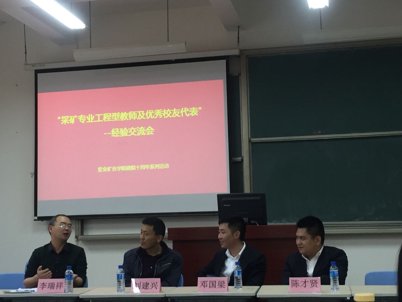 2017年3月25号,教学基地邀请到优秀“工程型”教师代表李瑞祥、优秀校友陈才贤、邓国梁,与14级采矿专业学子分享、交流紫金矿业集团情况、矿业就业形势、本专业考研等问题。