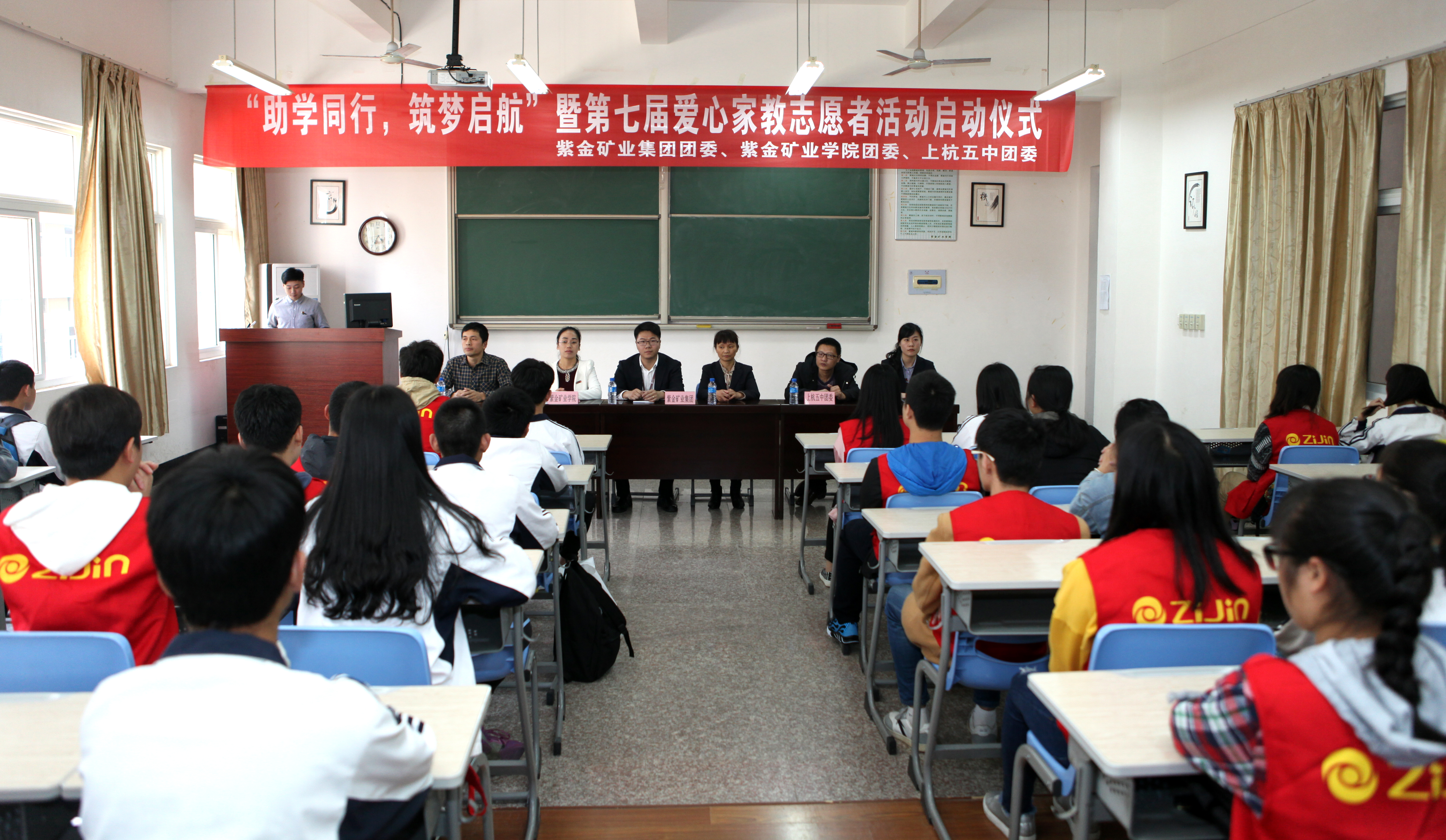 4月1日下午,由紫金矿业学院、紫金矿业集团、上杭县第五中学联合举办的“助学同行,筑梦起航”暨第七届爱心家教志愿者活动启动仪式在基地综合楼201举行。出席本次活动的有紫金矿业集团党委委员、党办主任、党群与成人影视部部长吴丽华,紫金矿业集团团委书记、党群与成人影视部科级主办赖吉辉,上杭五中团委书记华国和,紫金矿业学院上杭教学基地教师姜秀玲等。