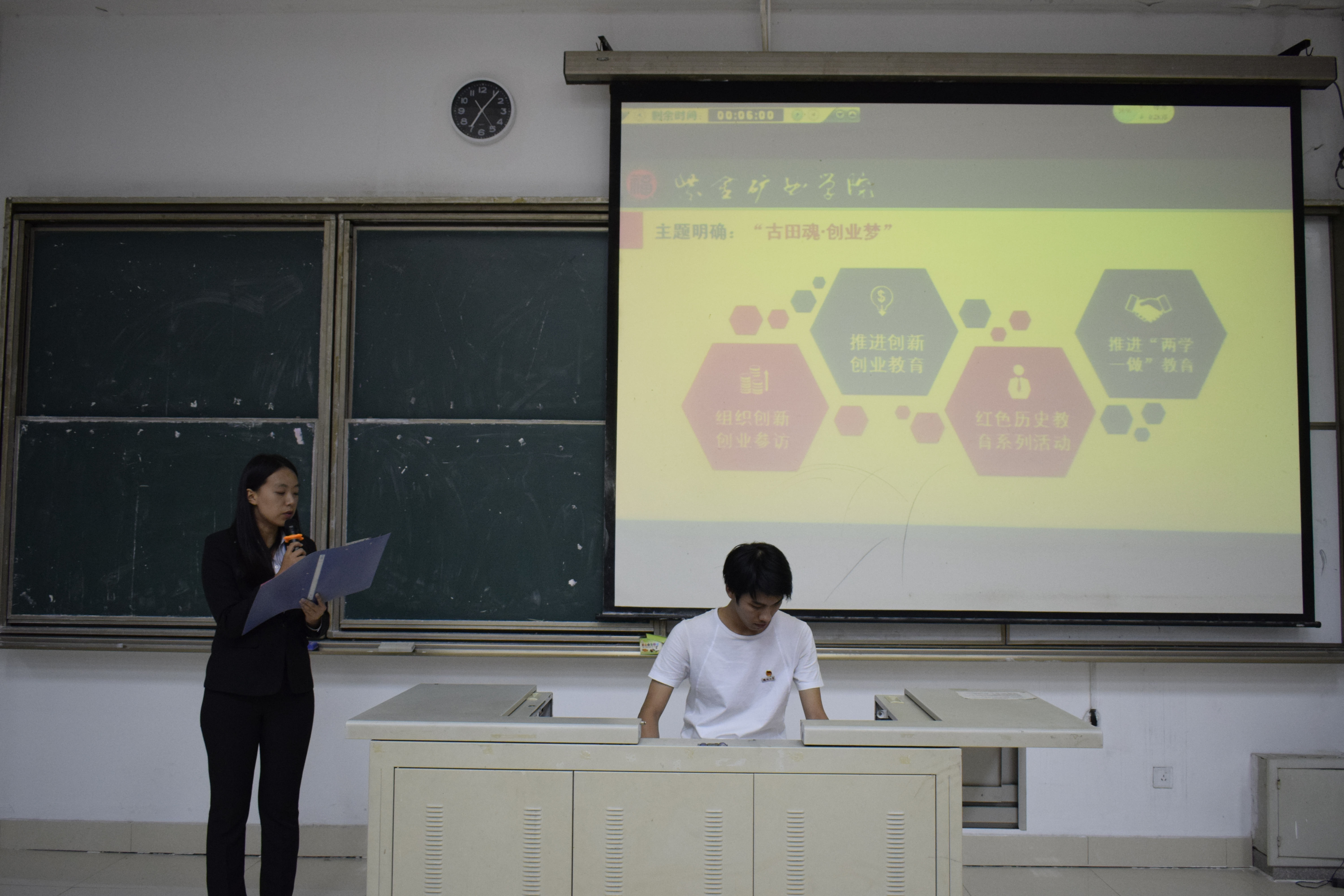 9月19日晚七点,成人影视第一届暑期社会实践活动风采展在教学楼东三-100顺利举行。出席此次活动的老师有院党委副书记郑寿老师、院团委书记李金土老师、2016级采矿工程专业班导师李兵磊老师、辅导员范新垲老师、姜秀玲老师、王聪聪老师。