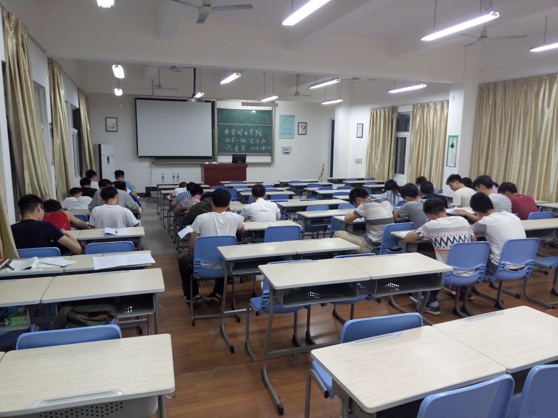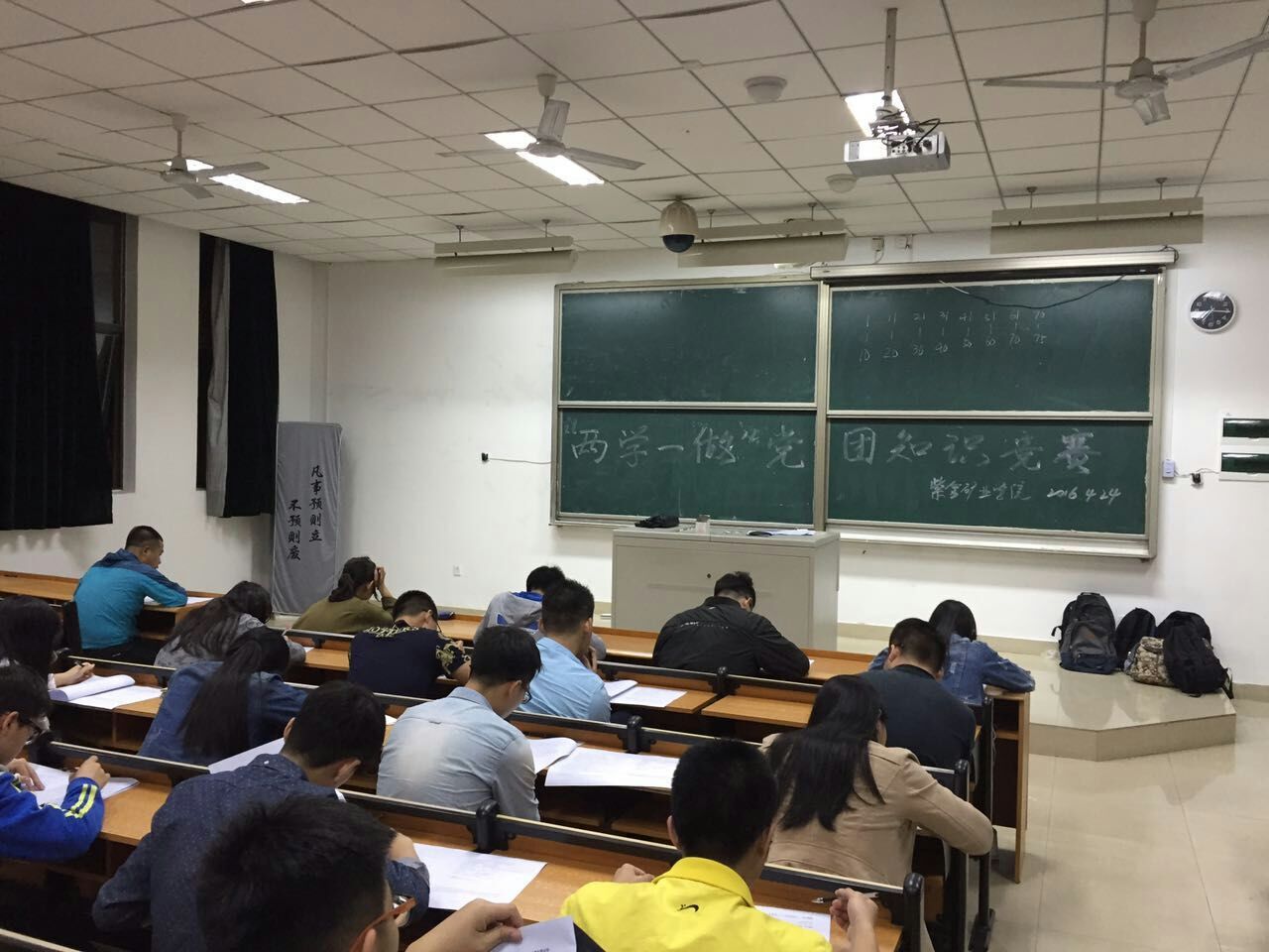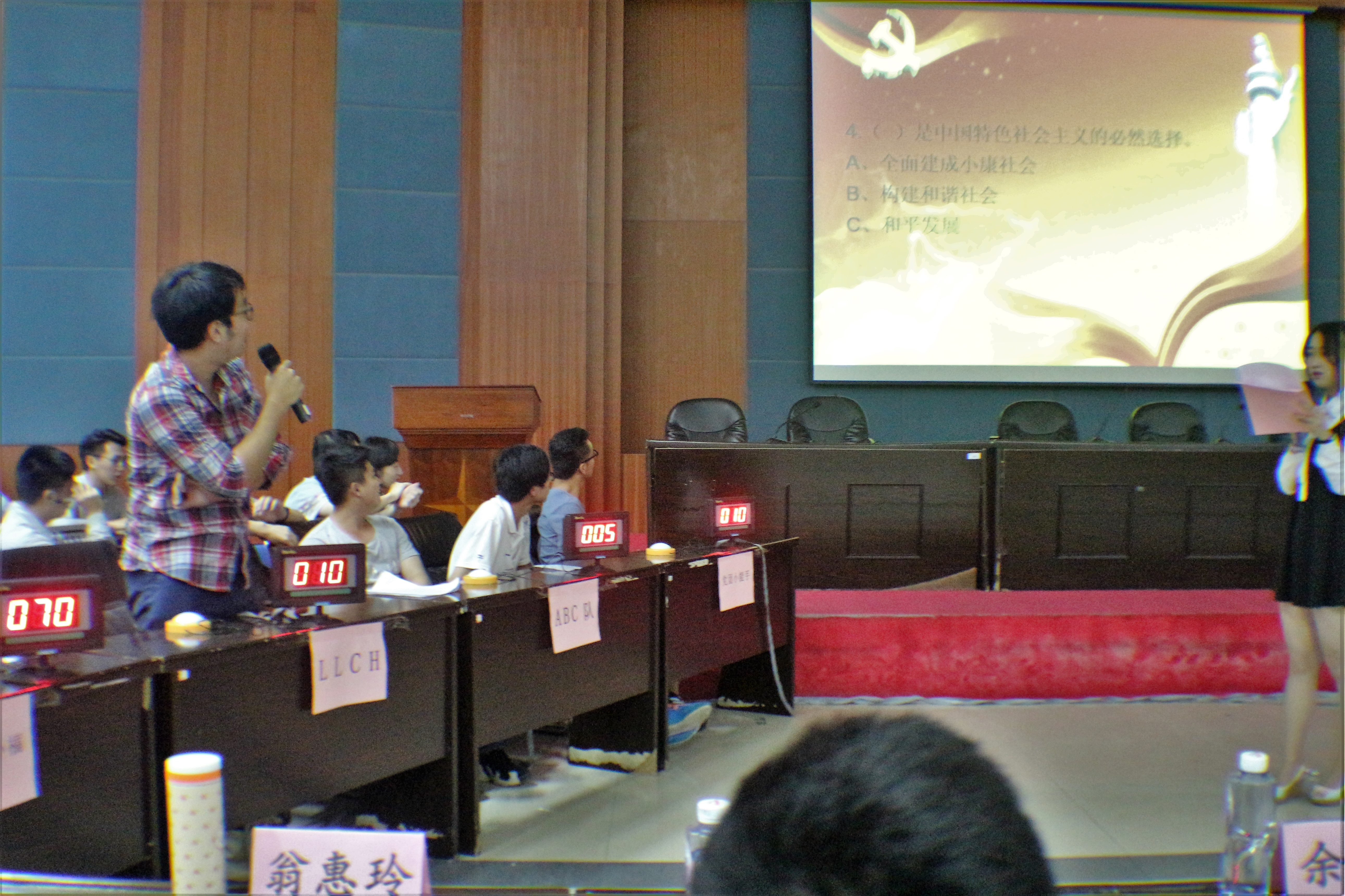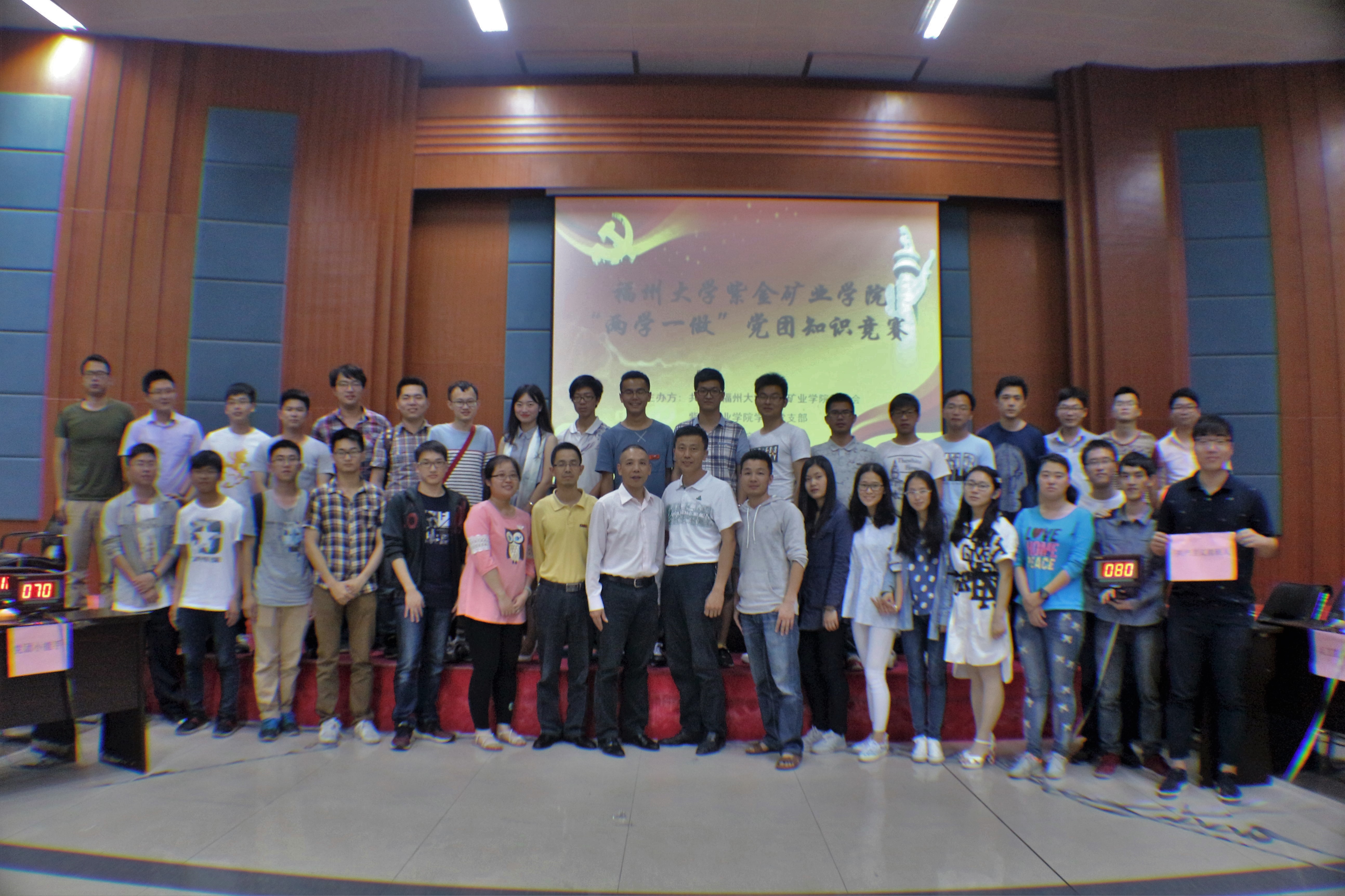 5月20日晚6:30,紫金矿业学院“两学一做”党团知识竞赛决赛在学院三楼报告厅举行,出席活动的嘉宾有院党委余飞副书记,院党委秘书、党委委员方友喜老师,采矿系支部书记刘建兴老师,院团委书记李金土老师,院学生支部书记翁惠玲老师。全院在校学生党员、部分入党积极分子观看了本次竞赛。