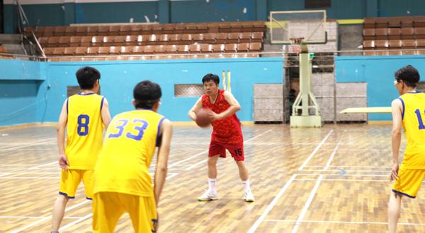 比赛在激烈、友好的气氛中进行,双方队员本着“友谊第一,比赛第二”的体育精神,充分展示出个人精湛的篮球技艺、体现了良好的团队合作精神,整场比赛打得既激烈又流畅。两支球队队员配合默契,防守严密,步步紧逼,这边学院代表队插空进球,队员凌空跃起,快步抢夺篮板;那边集团总部队员单手上篮,空心落网……一个个精彩的瞬间、一幕幕扣人心弦的场面,赢得场下观众的阵阵喝彩。整场比赛异彩纷呈,队员们赛出了友谊,赛出了风格,赛出了水平。