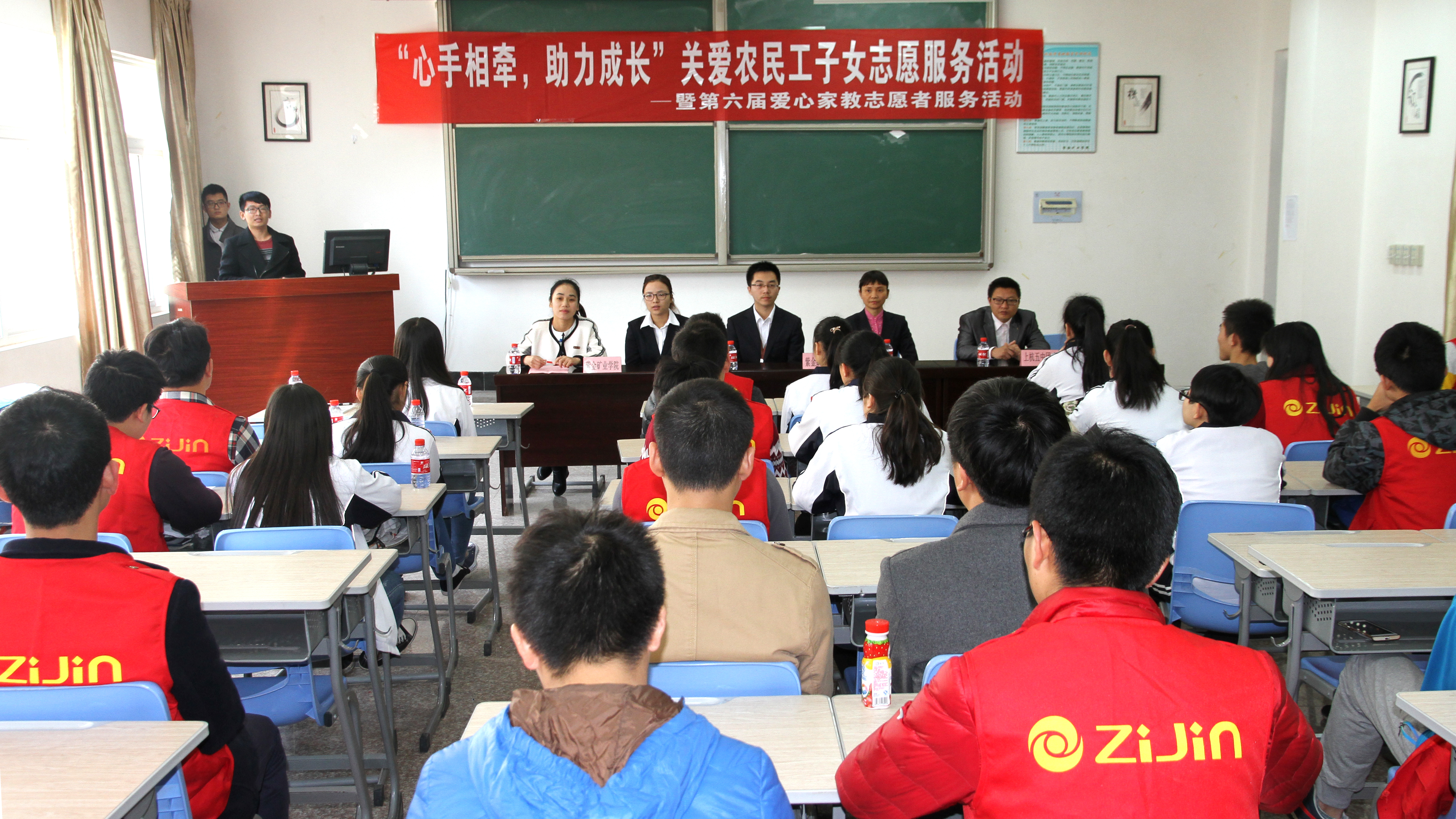 仪式开始,集团吴丽华主任首先传达了紫金矿业集团对爱心家教活动的重视,并对学院大学生志愿者无私奉献的精神给予了充分的肯定。随后,姜秀玲老师对紫金矿业学院志愿者提出了要求,希望大学生们要利用学识去回报社会,帮助上杭县留守农民工学生,为上杭县教育事业贡献自己的一份力量。最后,上杭五中团委华国和书记在充分肯定爱心家教活动的同时也向前来接受爱心支教的五中同学提出了希望。