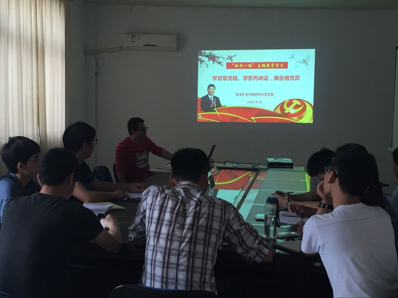 2016年2月,中共中央办公厅印发了《关于在全体党员中开展“学党章党规、学系列讲话,做合格党员”学习教育方案》,并发出通知,要求各地区各部门认真贯彻执行。开展“两学一做”学习教育,是面向全体党员深化党内教育的重要实践,是推动党内教育从“关键少数”向广大党员拓展、从集中性教育向经常性教育延伸的重要举措。为响应和贯彻中央文件指示要求,4月21日下午2点,研究生党支部在学院北206会议室开展“两学一做”专题学习讨论,学院研究生党支部书记、研究生辅导员马英强老师担任主讲,学院全体在校研究生党员参加了此次学习讨论会。