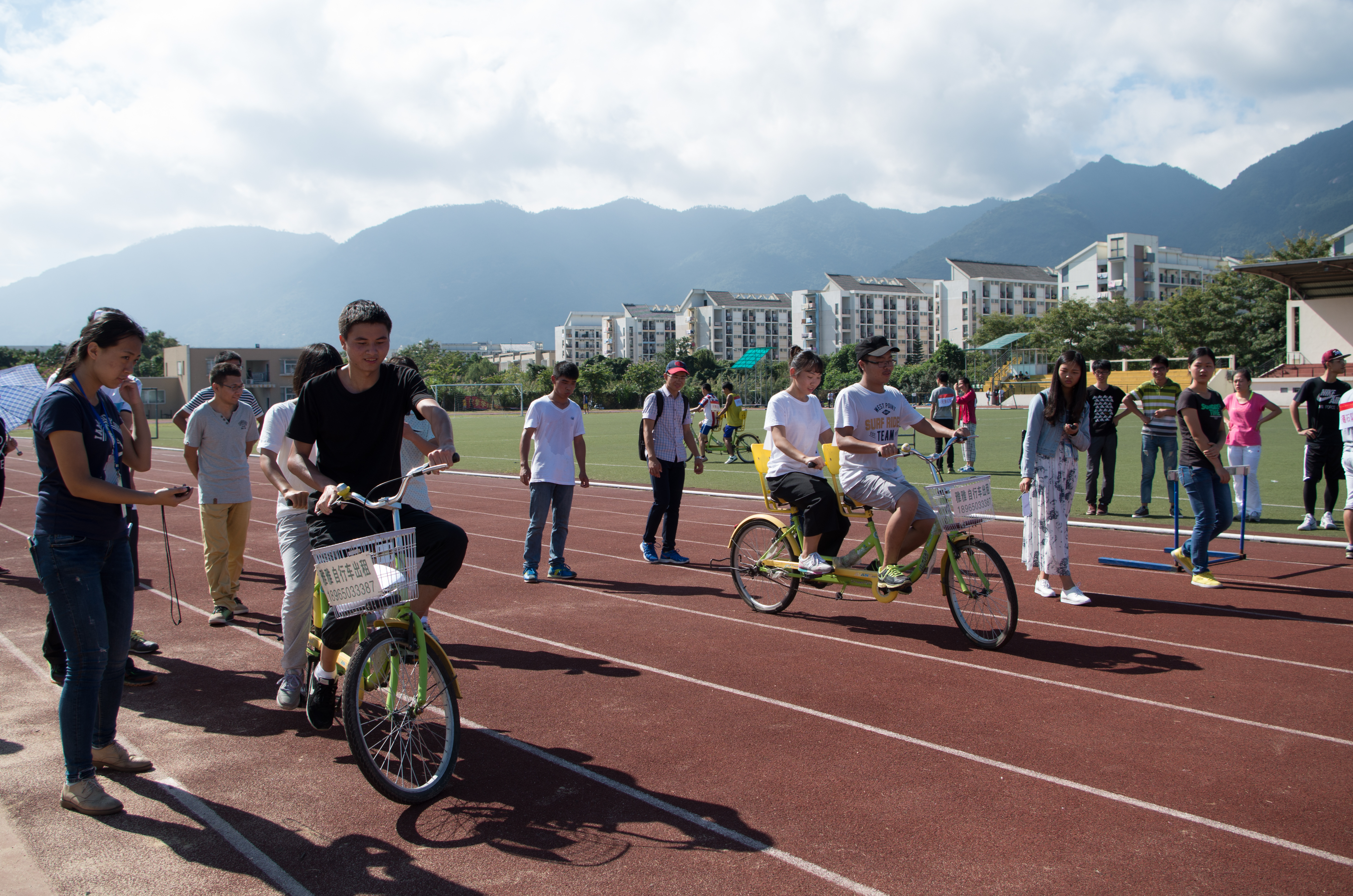 在开幕式上,彭副院长作了简要的讲话,随后运动员代表和裁判员代表先后宣誓。本次比赛的区域涵盖学校各个角落,要求选手们在规定的时间内通过答题寻找对应游戏点的位置,并通过GPS定位仪到达指定位置,完成规定数量信封的搜集。除了常规的环校路障越野以外,还有“比比谁骑得慢”的40m慢骑比拼,考验选手们团队协作精神的四人五足竞走比拼,新颖奇特的咬纸杯传递乒乓球比拼……许许多多构思精巧的小游戏,让整个比赛趣味性十足。集体类的比拼提升了同学们的团队意识,而新颖奇特、从未谋面的小游戏又锻炼了同学们随机应变的能力。