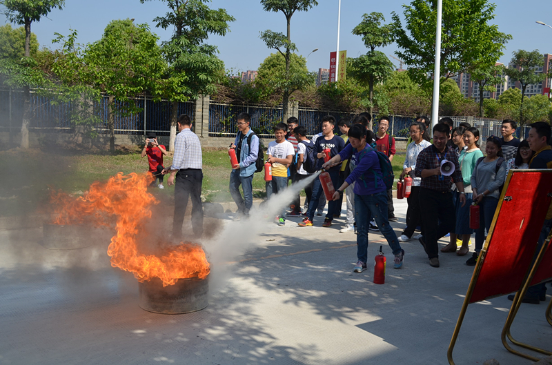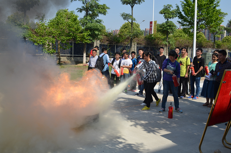 本次演练一开始,保卫部林雄、彭桂平向大家讲解了火灾的安全处置和灭火器的使用等消防安全知识,接着给师生示范了干粉灭火器的使用方法,组织参演的教师和学生进行了灭火器扑救油盆火灾演练活动。大家踊跃参加灭火实践,使用灭火器进行灭火演练,体验紧张的灭火过程。
