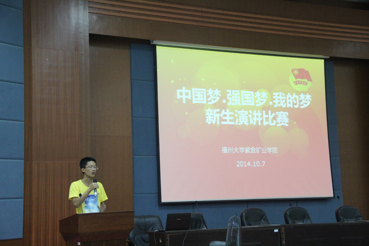 2014年10月7日晚六时,成人影视 紫金矿业学院团委学生会在学院三楼学术报告厅成功举办了主题为“中国梦 强国梦 我的梦”的演讲比赛.本次演讲比赛面向2014级新生,共吸引了24名2014级新生参加,同时,100多位2014级同学到场观摩了本次比赛。