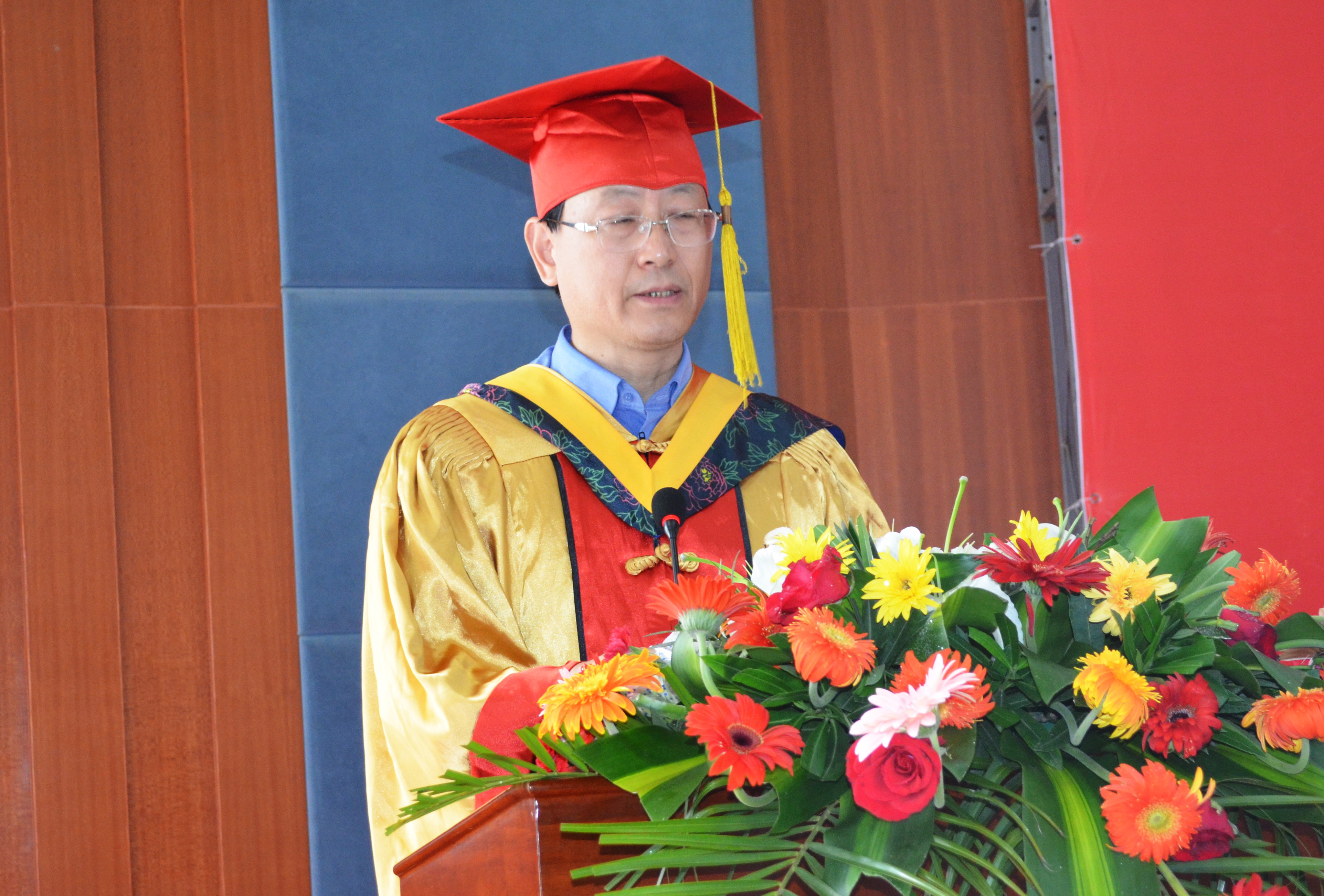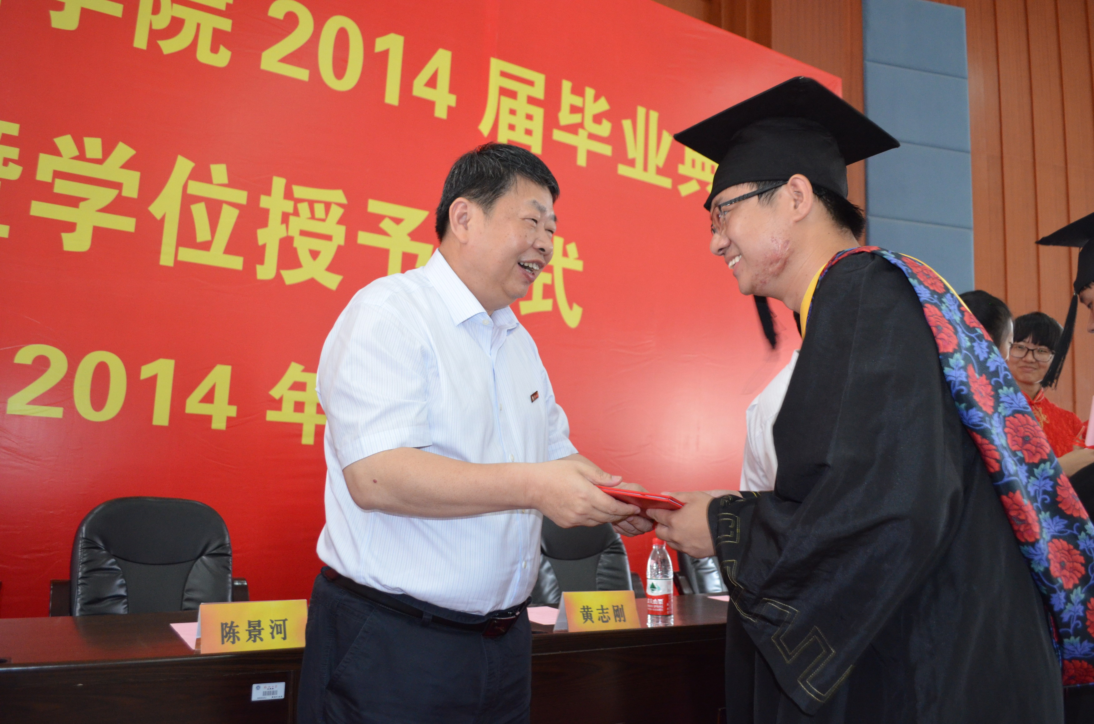 刘羽院长致辞陈景河董事长致辞黄志刚校长助理颁发毕业证陈景河董事长颁发毕业证刘羽院长和彭向东副院长拨穗典礼现场