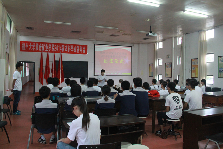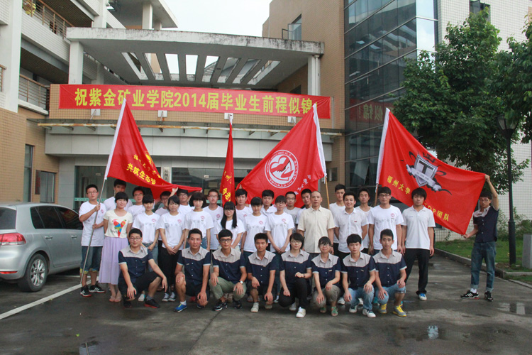 首先,李金土老师介绍了紫金矿业学院2014年大学生暑期社会实践总体安排部署,他强调,此次实践活动,是为积极响应党的十八届三中全会精神,积极践行大学生的实践意识,培养艰苦奋斗的精神。曾雪菲同学代表本次暑期社会实践的全体队员进行发言,一方面感谢学院对此次社会实践活动的大力支持,另一方面,也代表实践队全体同学向学院保证,此次实践活动必将按照学院部署,全力以赴,在实践中锻炼自我。随后,余飞副书记做了发言,他充分肯定了学院近年来大学生暑期社会实践活动取得的显著成效,并对即将出征的老师和同学们提出了四点希望和要求:一是加强教育,确保安全。要加强社会实践安全培训和教育工作,有效落实安全责任制。尤其强调学生人身安全注意事项,增强学生安全意识,对社会实践要制定安全预案;第二,艰苦朴素,锻炼意志。要求各实践队在实践过程中秉承节约意识,牢记实践主题,克服困难,不铺张浪费;第三,积极建立长效机制,在实践过程中,与地方做好沟通交流,争取建立长期实践点;第四,巩固机制,探索创新。要把暑期社会实践活动现有的机制更好的巩固,同时积极结合新情况,不断探索创新,将暑期社会实践工作做得更加扎实、更加富有成效。最后,各位老师共同为实践队伍授旗,并合影留念。 据悉,紫金矿业学院今年的暑期社会实践以“为祖国勤学修德•以实践明辨笃实”为主题,由学院团委组织各年段以项目申报的形式,从全院同学中,选拔优秀学生组成4支暑期社会实践队,其中包括一支省重点团队、一支校重点团队及若干支院重点团队。各个实践队将奔赴福建省各地,依托成人影视上杭教学基地,深入农村、深入基层、深入实际,广泛开红色教育、社会调研、环境保护、爱心支教、校友访谈等实践活动。