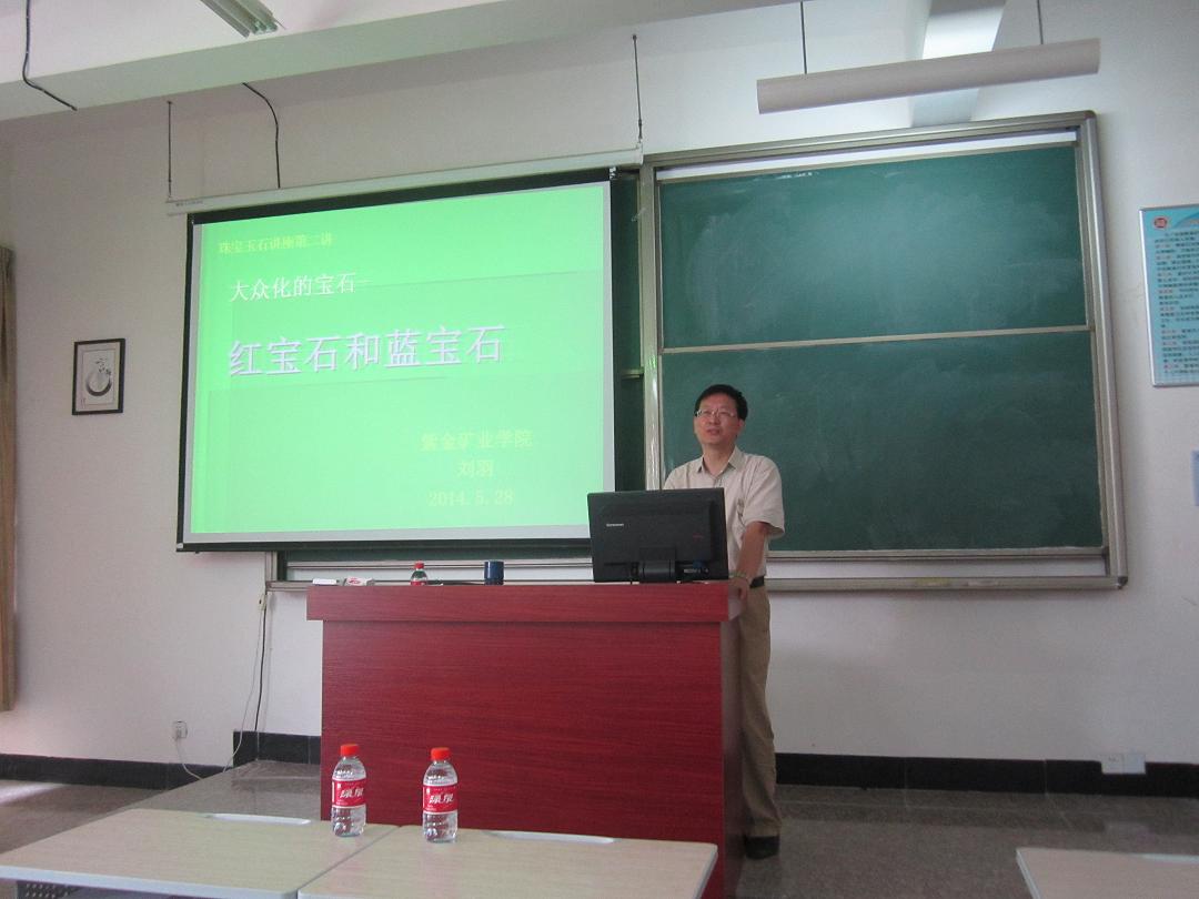 5月28日上午10时,由紫金地质矿产博物馆主办、紫金矿业学院承办的《大众化的宝石---红宝石和蓝宝石》科普讲座在上杭教学基地综合楼东-201举行,院长刘羽教授现场揭开宝石面纱。上杭县观赏石协会会员、紫金矿业集团员工和学院2011级学生等100余人到场听取了讲座。