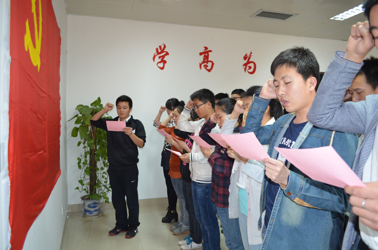 5月7日下午,成人影视学生党支部组织全体毕业班新党员在学院北206会议室召开入党宣誓大会。出席大会的有院党委黄培明书记、党委委员方友喜、2010级辅导员李金土及全体毕业班党员。会议由学生党支部书记翁惠玲老师主持。 宣誓大会在庄严的国际歌中拉开序幕。李金土老师领誓,16名毕业班新党员在党旗下庄严宣誓。之后,黄培明书记做讲话,他首先为全体毕业班党员解读学习党的群众路线教育实践活动精神,并进行下一阶段工作布置,要求毕业班党支部根据实际情况开展民主生活会,结合毕业答辩和离校工作做到文明离校。然后黄书记对在座毕业班党员提出了几点希望,希望学生党员牢记入党誓词,坚定理想信念;牢记宗旨,树立为人民服务思想;在毕业答辩环节中发挥党员的先锋模范作用,争取毕业论文质量较往届有所超越;自觉遵守党纪党规,严于律己,清正廉洁。 最后,院党委委员方友喜就毕业生党组织关系转移注意事项进行讲解,希望全体毕业班党员务必严守规定,做好毕业前党组织关系转移工作,避免成为“口袋党员”。会议在热烈的气氛中圆满结束。(翁惠玲供稿)