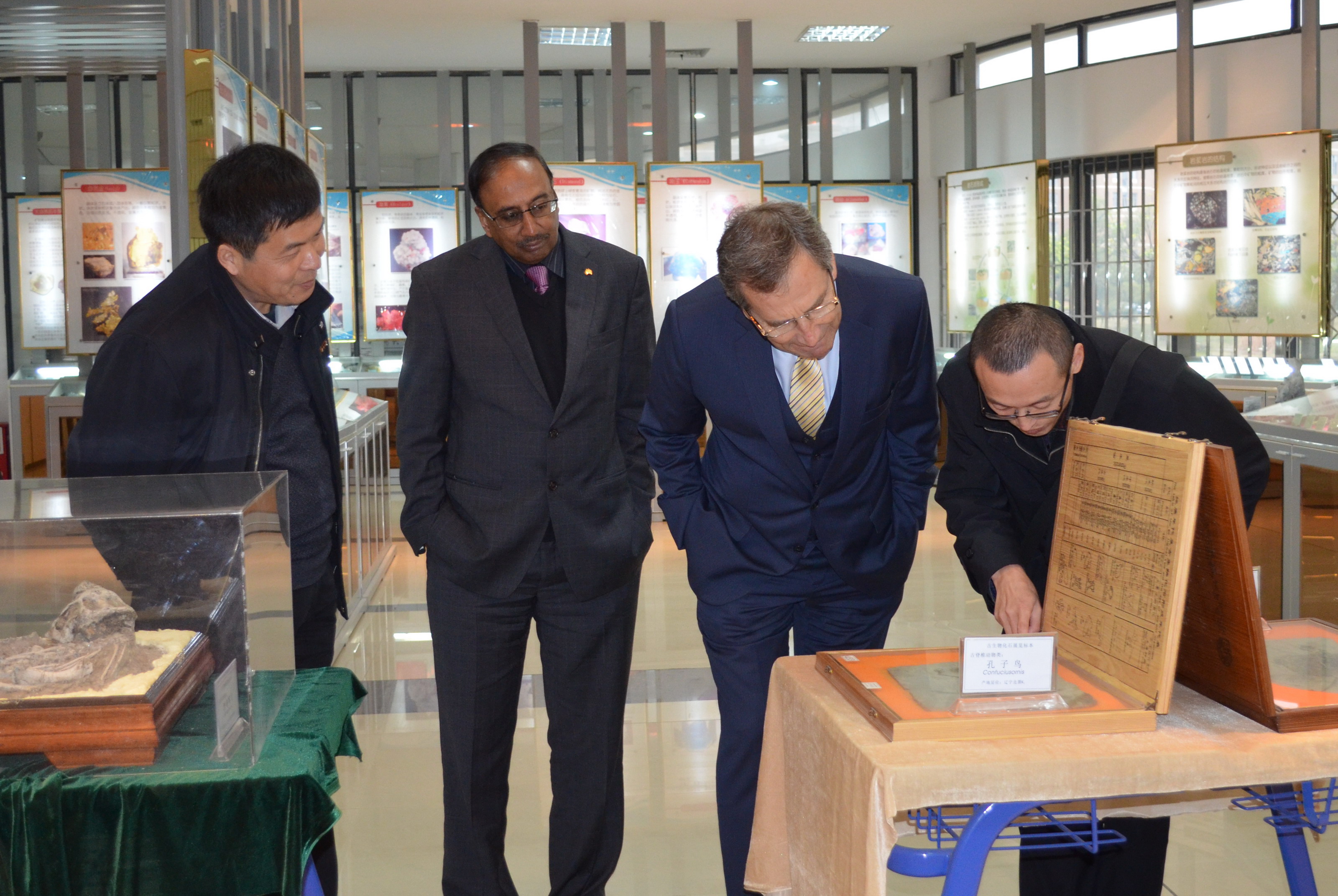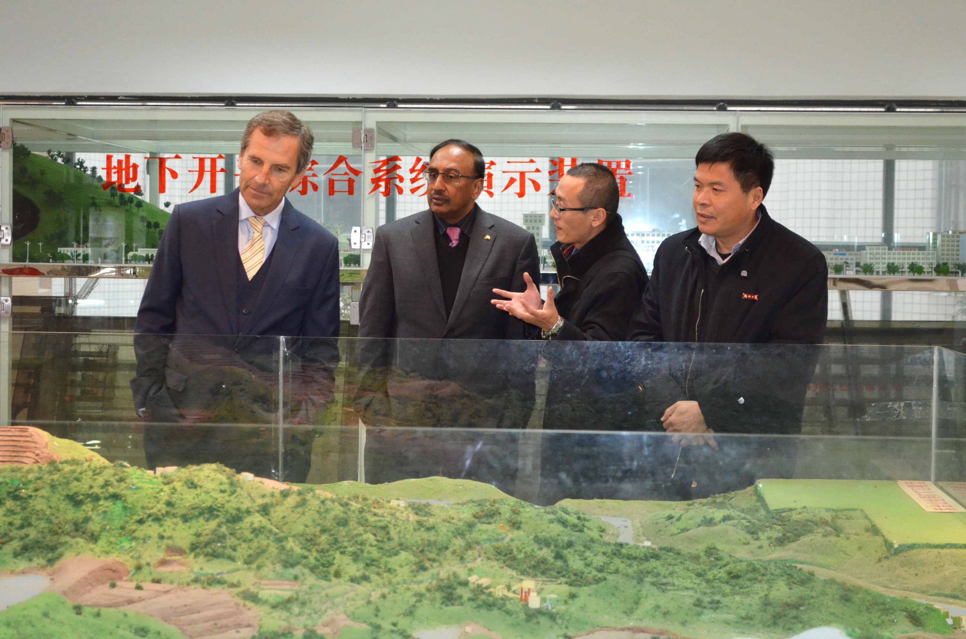 来校访问合影参观采矿模型参观地矿陈列室