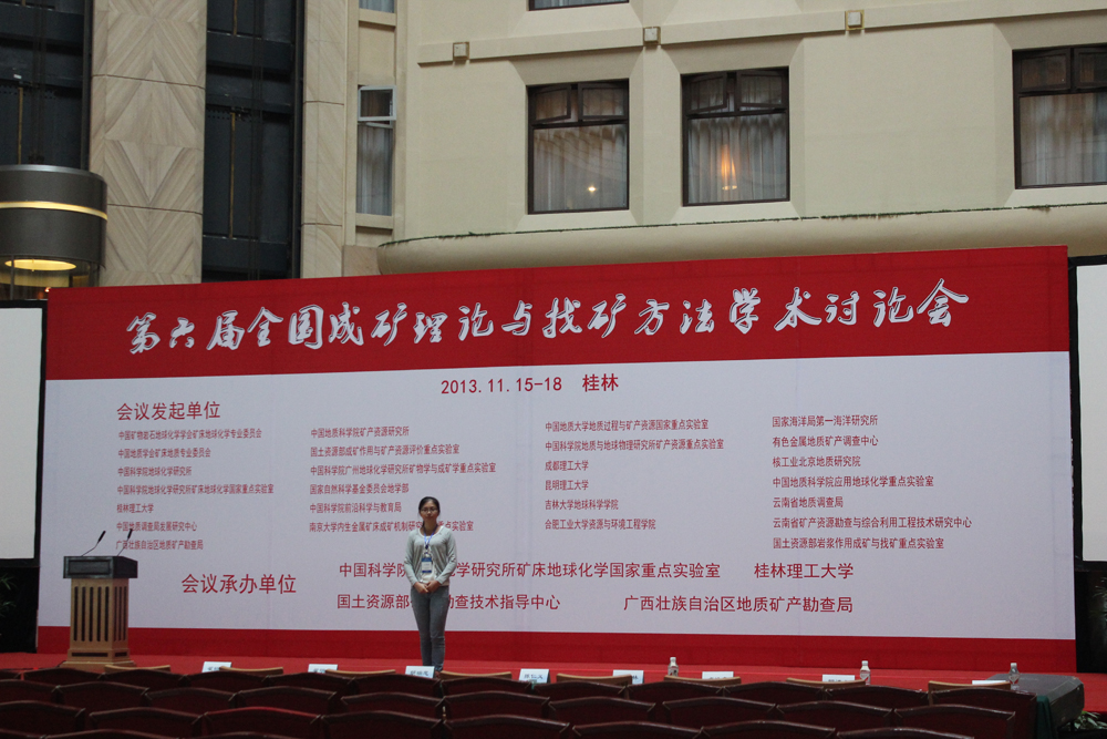 2013年11月15-18日 “第六届全国成矿理论与找矿方法学术讨论会”在广西桂林召开。会议由中国科学院地球化学研究所矿床地球化学国家重点实验室、桂林理工大学、国土资源部矿产勘查技术指导中心、广西壮族自治区地质矿产勘查局承办。 本次学术讨论会设置了15个专题,就中国东部中、新生代大规模成矿作用,岩浆矿床成矿作用,华南大规模低温成矿作用、分散、稀有、稀土元素及铀成矿作用,碰撞造山-大陆增生与成矿,前寒武纪重大地质事件与成矿,地质流体与成矿,成矿作用的理论和实验模拟,成矿作用示踪及成矿年代学,现代海底成矿与找矿,矿产资源综合利用及矿山环境,区域找矿理论和方法等进行了深入探讨。 成人影视资源勘查工程教研室黎敦朋老师和2010级资源勘查工程学生陈素余参加了本次讨论会。陈素余同学还在大会中做题为《福建紫金山铜金矿床铜矿物及其主要特征》报告。