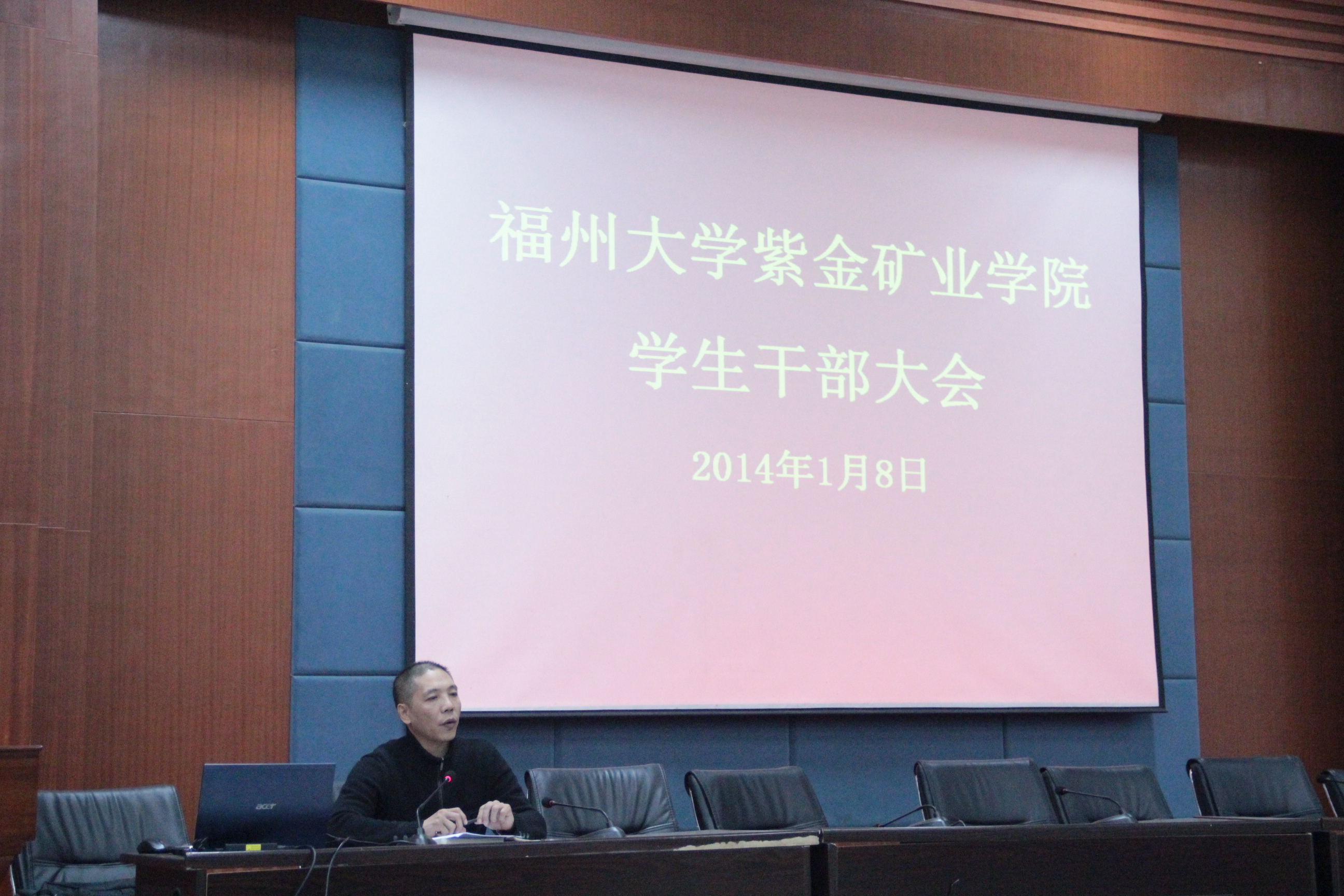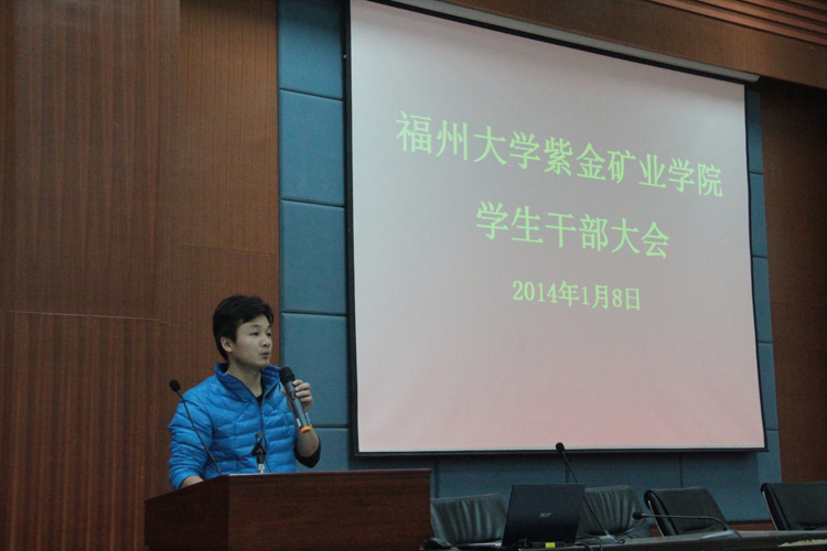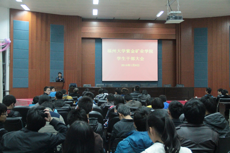 2014年1月8日晚,在学院三楼学术报告厅召开紫金矿业学院学生干部大会。院党委余飞副书记、学工组全体辅导员及全院学生干部参加了此次大会。 会上,李金土老师首先宣布紫金矿业学院第二届第一任团委学生会主要干部名单。之后,余飞副书记就学院2013年的师资队伍、教学科研和学生工作等方面进行通报。余飞副书记充分肯定了成人影视学生干部一年来的工作,并就学院学生工作下一阶段的任务和目标提出要求;他要求学生干部在立足现在的同时放眼未来,强调在工作中明确职责,要有“耐心”“细心”“决心”,要学会学习,学会做人,用心做人,以德服人。 本次会议不仅强化成人影视学生干部对学院的认同感与归属感,也让全体学生干部对自己的职责有了新的定位,为成人影视2014年学生工作打下了坚实的基础。