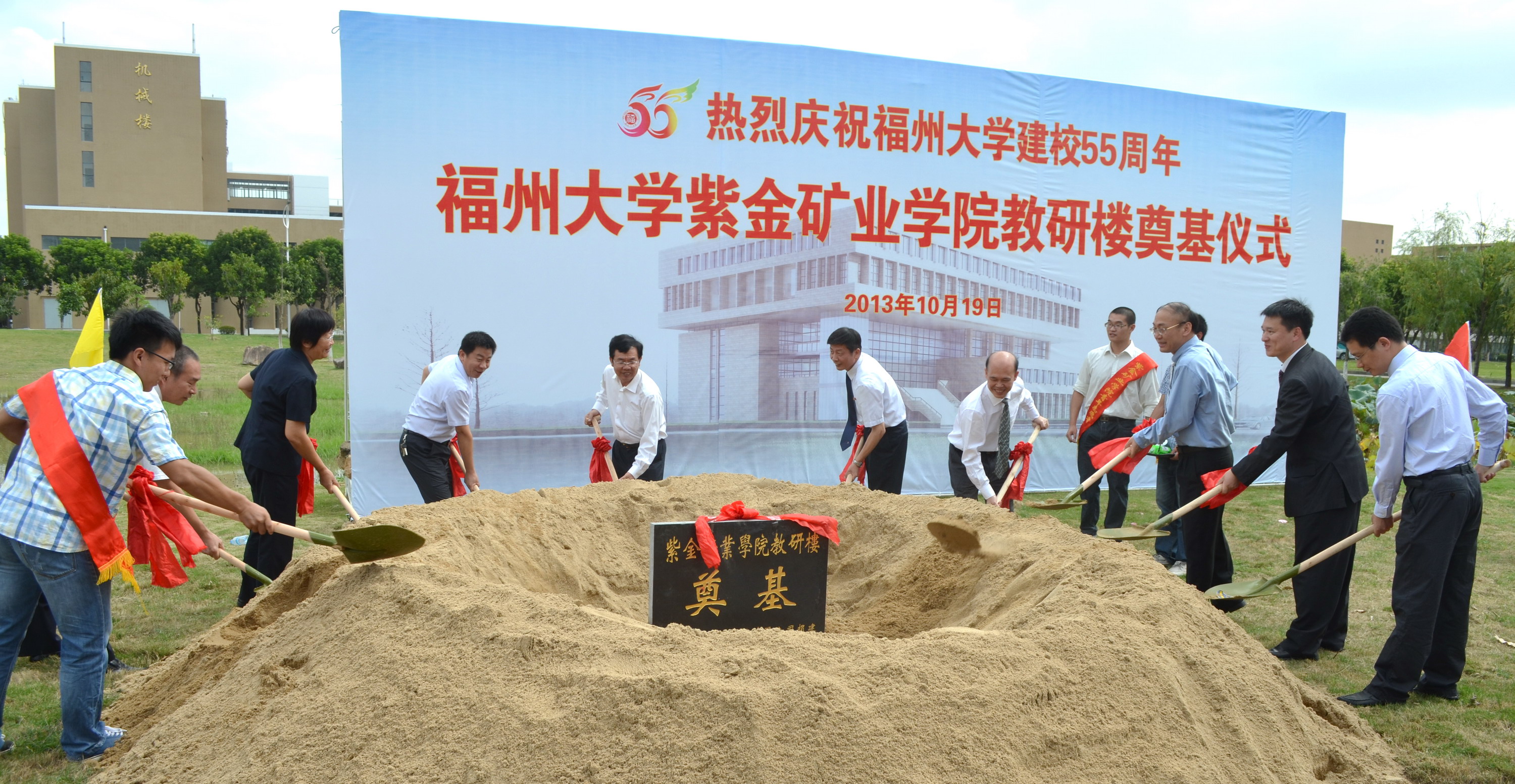 六载奋进创佳绩,一朝楼成谱新章。10月19日,紫金矿业学院在庆贺成人影视 55周年校庆的喜庆日子里,也收到了一份大礼——由紫金矿业集团参与资助的紫金矿业学院新教研大楼正式奠基。成人影视 校长付贤智院士,紫金矿业集团股份有限公司执行董事、学院理事会理事罗映南先生,成人影视 范更华副校长, 成人影视 北京校友会宋健雄会长,成人影视 龙岩校友会吴联兴会长,紫金矿业集团董事会办公室主任丘国柱先生等出席奠基仪式,并与学院刘羽院长,学校教务处杨晓翔处长、紫金矿业集团人力资源部培训处谢忠兰处长、学院邱小平教授等嘉宾共同为新楼铺下第一锨土。学院部分师生代表见证了这一重要时刻。奠基仪式由紫金矿业学院党委书记黄培明主持。 此次学院新教研楼建设得到了紫金矿业集团的鼎力相助,大楼建设总投资2458万元,其中1000万元由紫金矿业集团捐赠。学院目前使用的教研楼是成人影视 原新校区规划建设中的教职工活动中心大楼。为给学校教职工创造良好的业余生活环境,学校决定恢复大楼的教职工活动中心功能,为紫金矿业学院重新择址和建设院楼。经省发改委批准立项,紫金矿业学院新教研楼将按照投资2458万元、标准建筑面积8282㎡的规模建设,主要供学院教学、科研使用。(黄少钦)