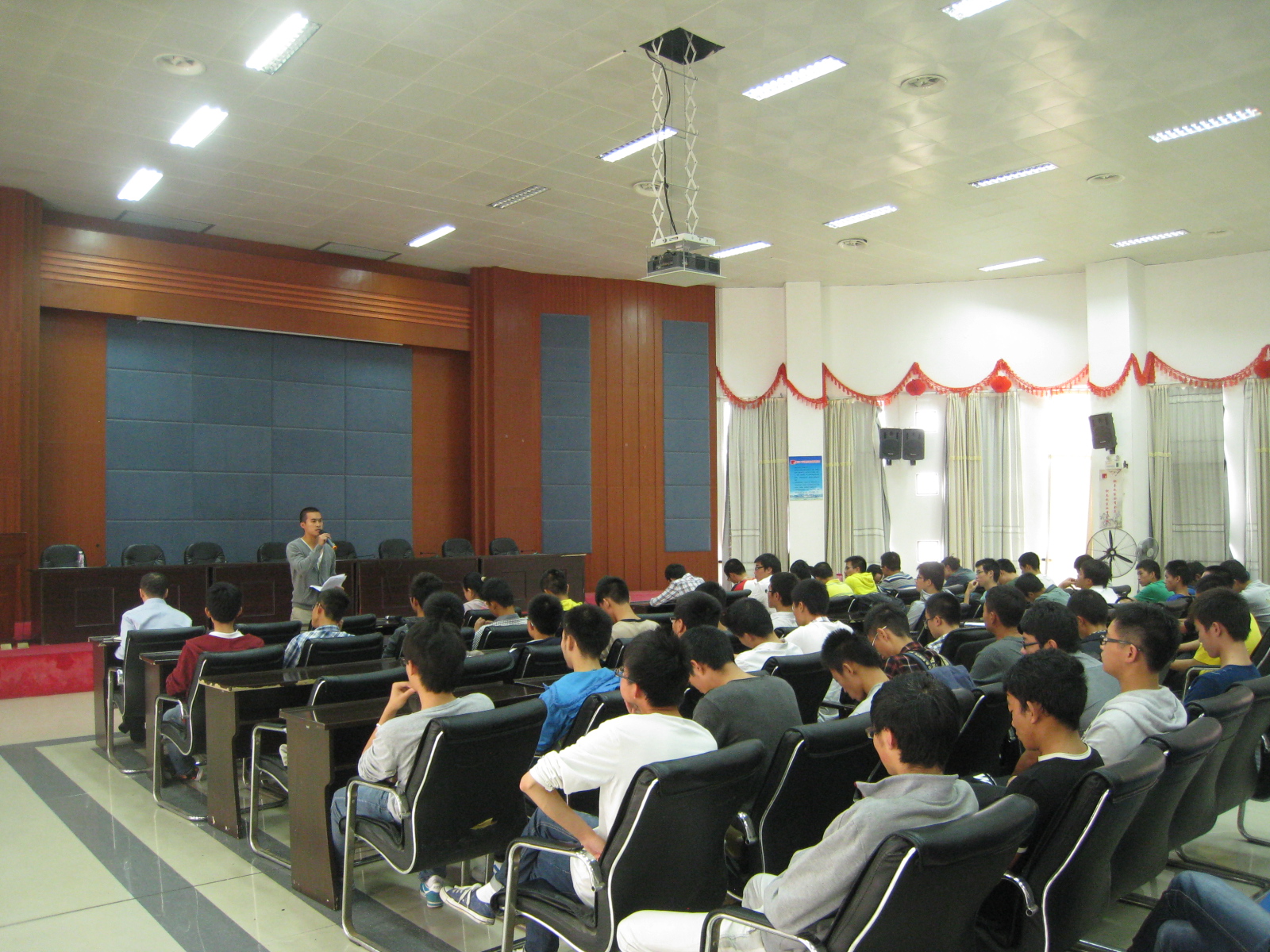 一年一度的校第42届田径运会即将拉开帷幕,学院运动会动员大会于11月9日上午9:30,在学院三楼学术报告厅举行。此次大会由院学生会主席王聪聪主持,学院党委副书记余飞、团委书记金娜、采矿工程专业辅导员范新垲等老师以及全体参赛运动会、裁判员、后勤保障人员和青年志愿者代表参加大会。 在会上,范新垲老师首先为参赛运动员在运动会赛前、赛中和赛后应注意的事项做了说明,并再次强调重在参与的意义,他要求运动员们,“紫金健儿一定要赛出风格,赛出水平,赛出紫金学子的风采”,力争展现成人影视学生积极向上的精神风貌。余飞副书记着重就本次运动会中运动员参赛、宣传报道、啦啦队和后勤服务保障工作做了进一步的要求,提出了努力争取获得“体育道德风尚”奖的目标。他还强调,运动会不仅是运动员的事情,更是需要全方位的共同参与,只有这样,才能真正做到“赛出风格、赛出水平”。 动员会的召开,表明了学院对校田径运动会的一贯重视,相信在学院领导的激励和同学们的努力下,学院的运动员们一定能在本届运动会中展现紫金人的风采。(罗瑞 陈生凯 供稿)