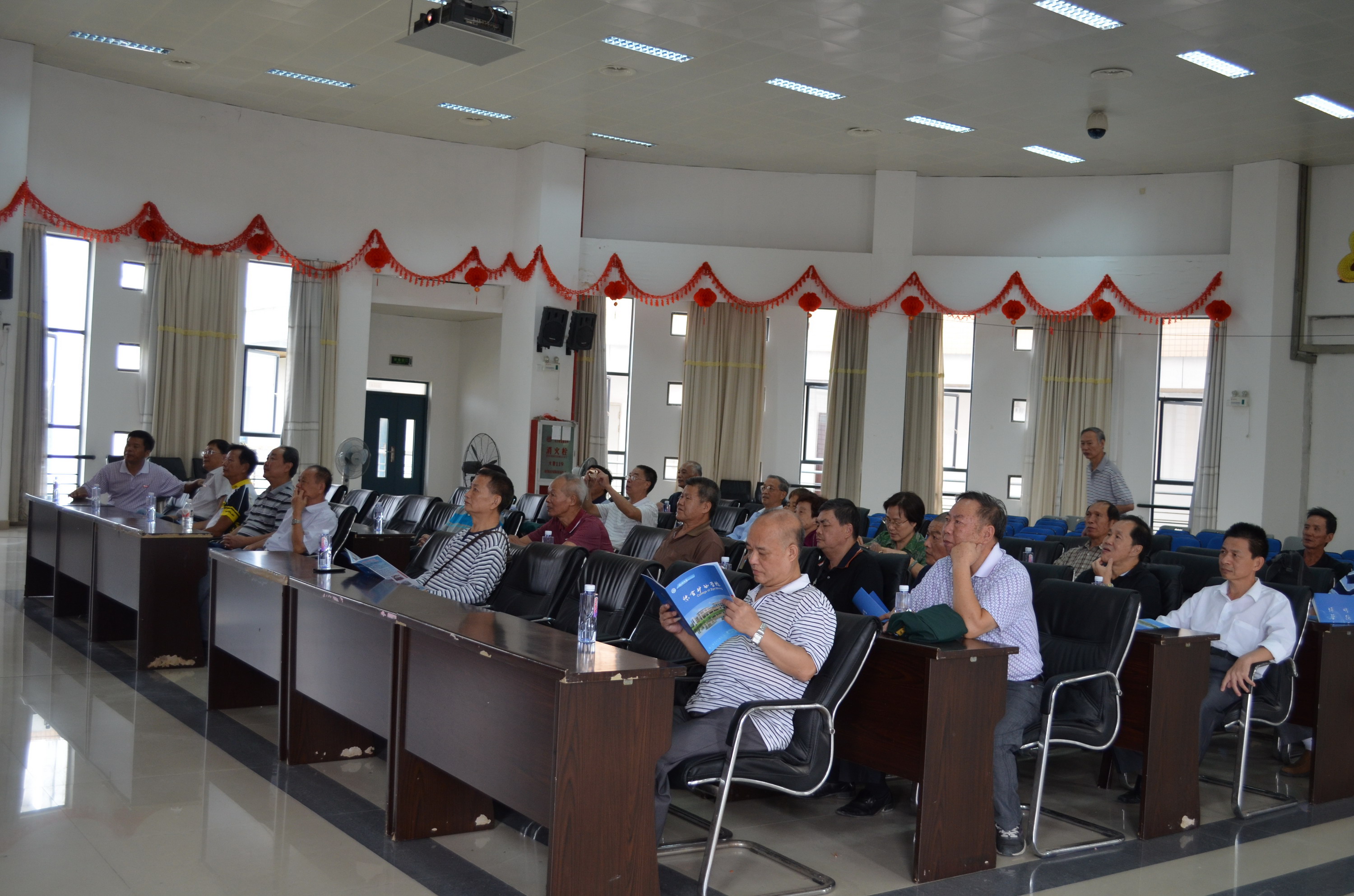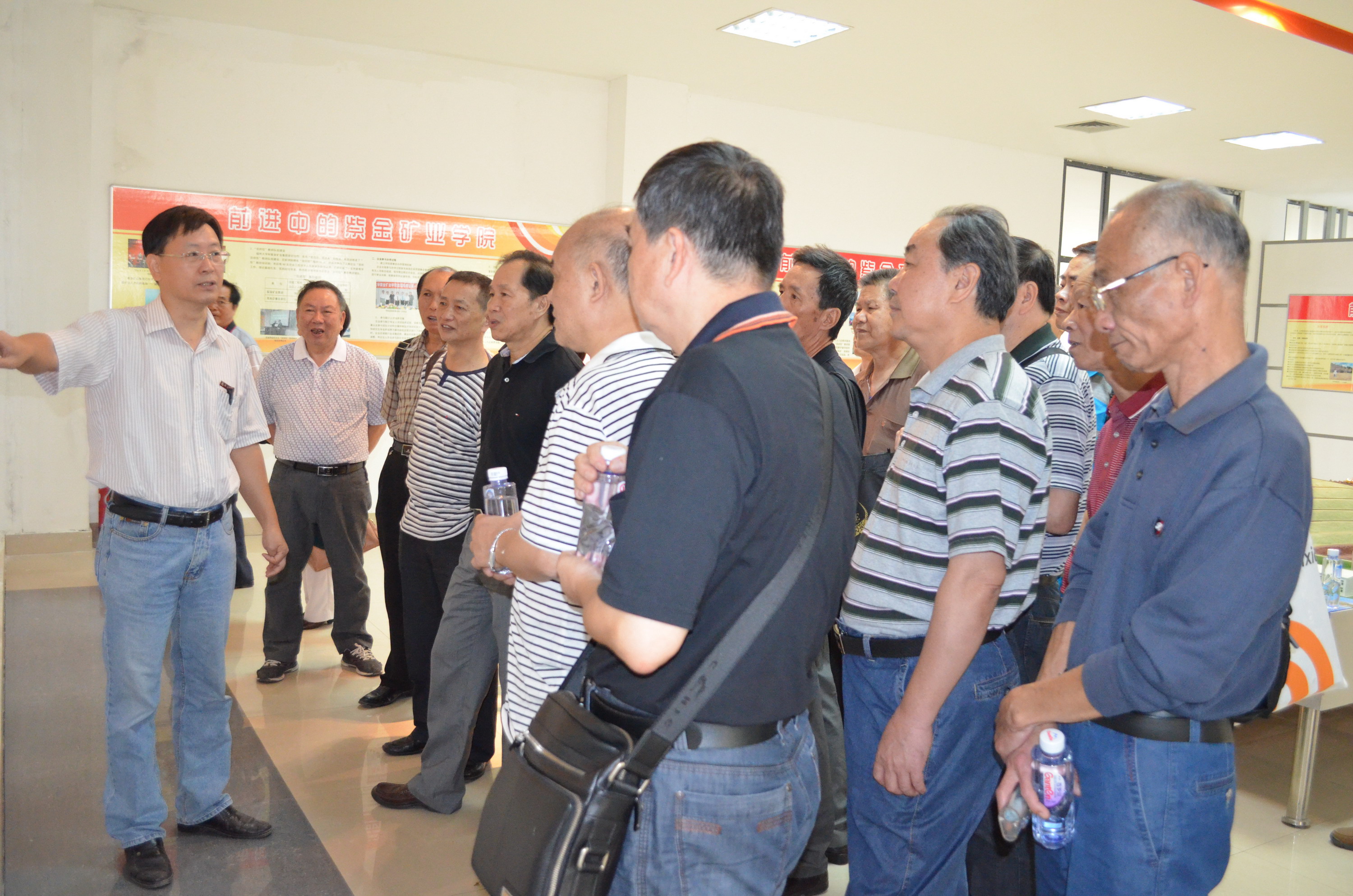 院长介绍学院发展参观地矿陈列室观看学校校庆宣传片合影留念