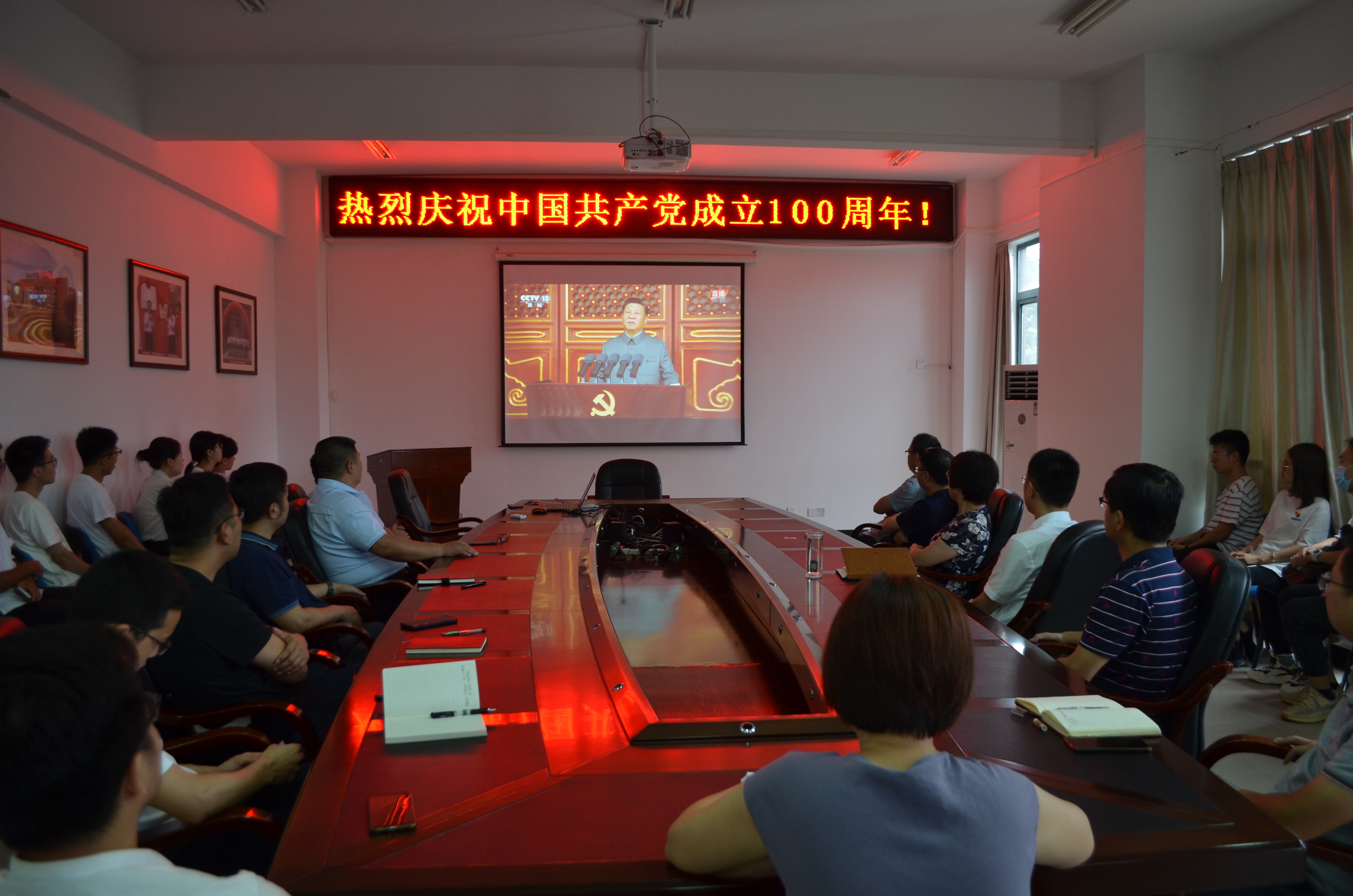 7月1日上午8时,成人影视教职工和学生党员代表一起在219会议室收看了在北京天安门广场隆重举行的庆祝中国共产党成立100周年大会直播,共庆建党一百周年。