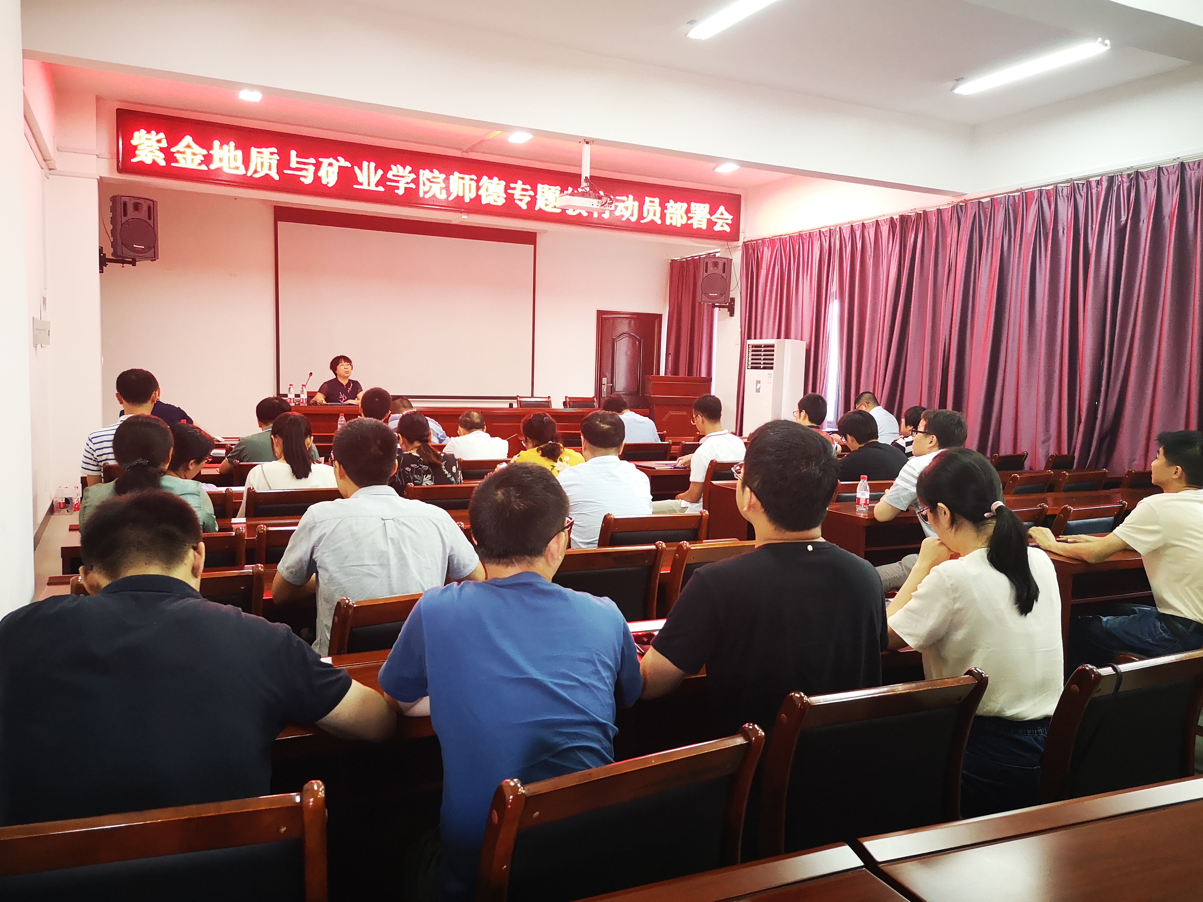 6月16日下午,成人影视在304报告厅召开师德专题教育动员部署会。郑寿副书记主持会议、徐雪玉书记做大会发言,全院在家教职工参加会议。